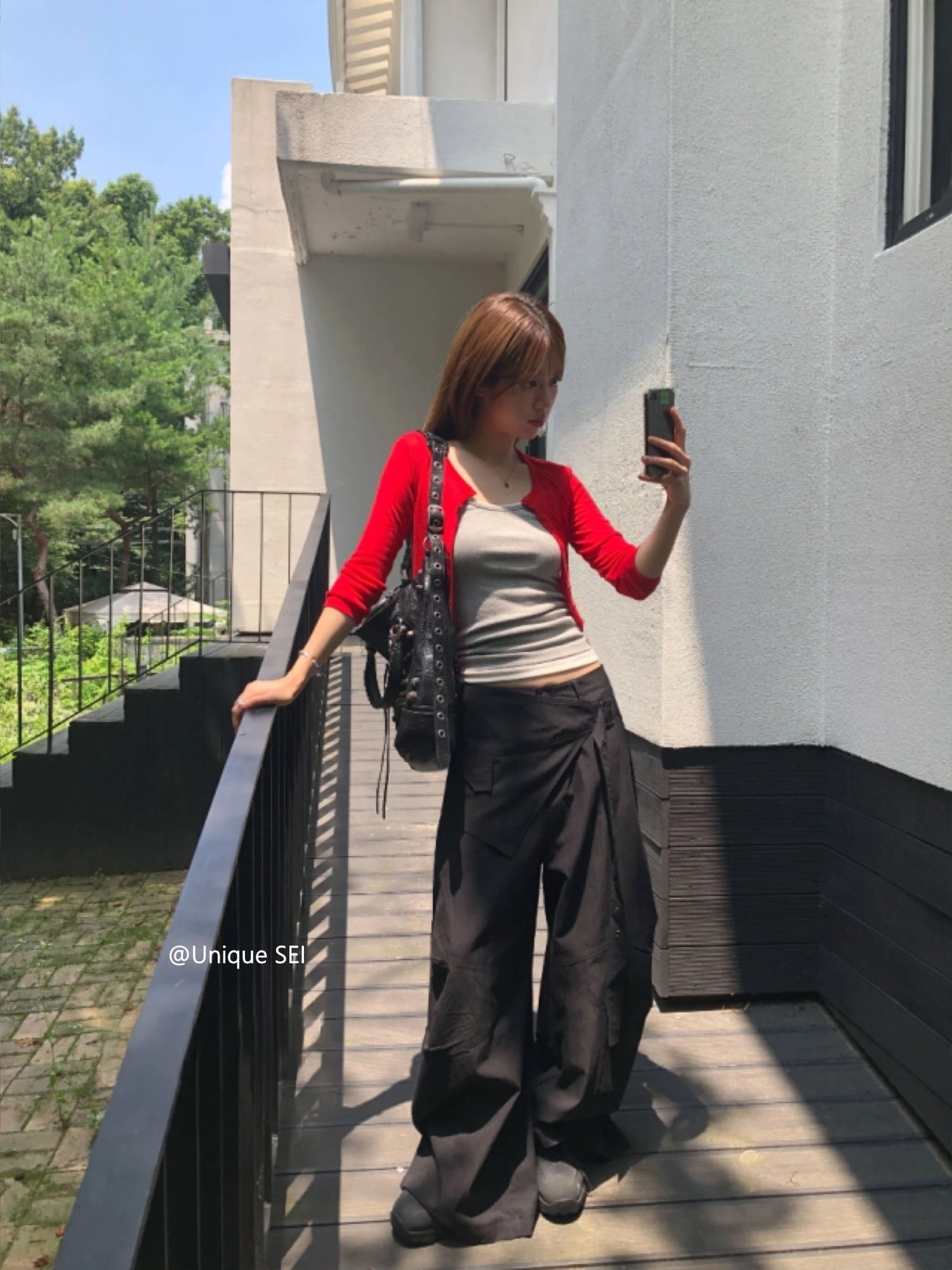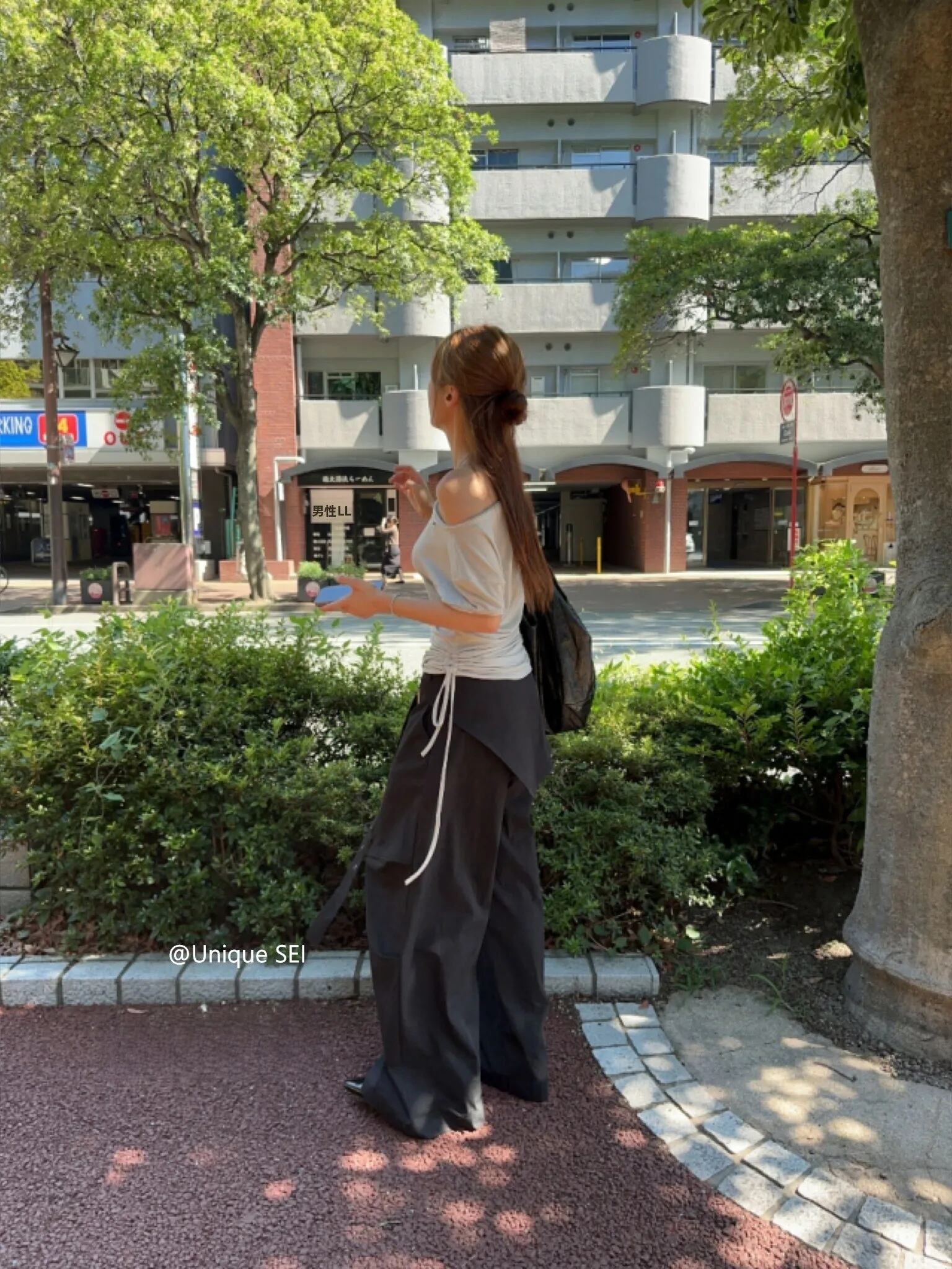 脚のラインを拾わないワイドな筒幅と、ウエスト周りのレイヤードが気になる部分を自然にカバーしてくれるところも嬉しいポイントです♪