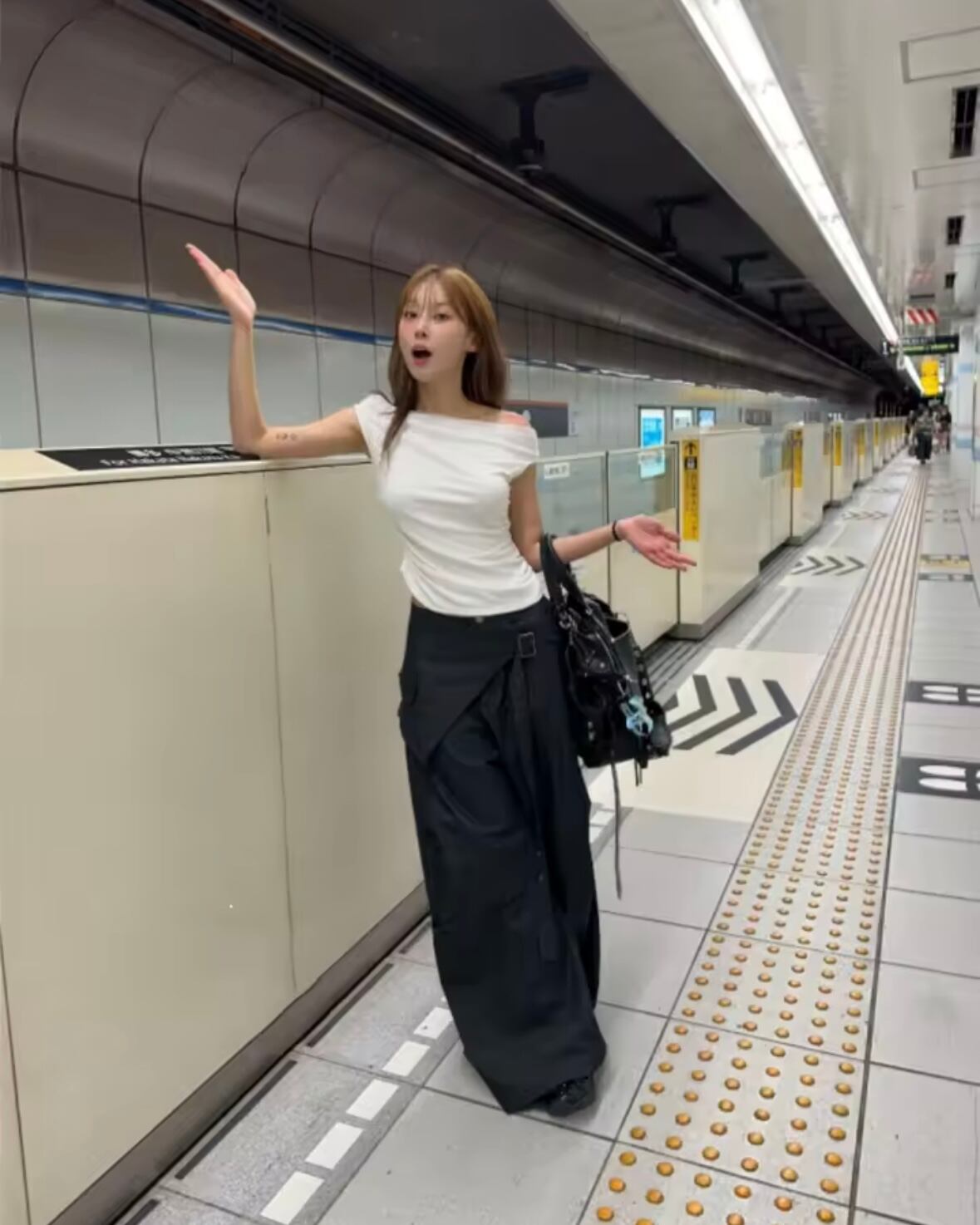 レイヤード 変形 ワイド パンツ ラップパンツ 韓国 ストリート モード 黒 ブラック レディース 10PA-1