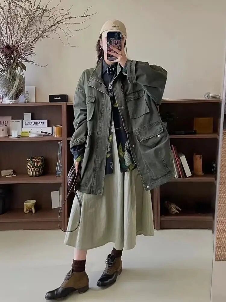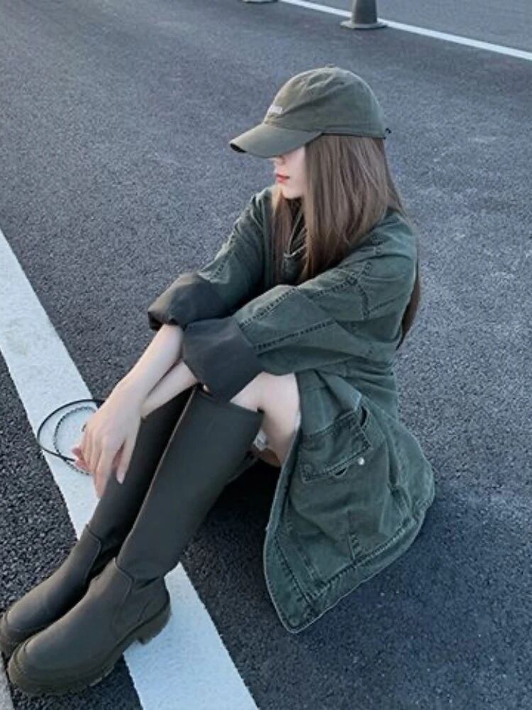ミリタリー ジャケット オーバーサイズ ブルゾン ワークジャケット マルチポケット 韓国 ストリート レディース 10AU-3