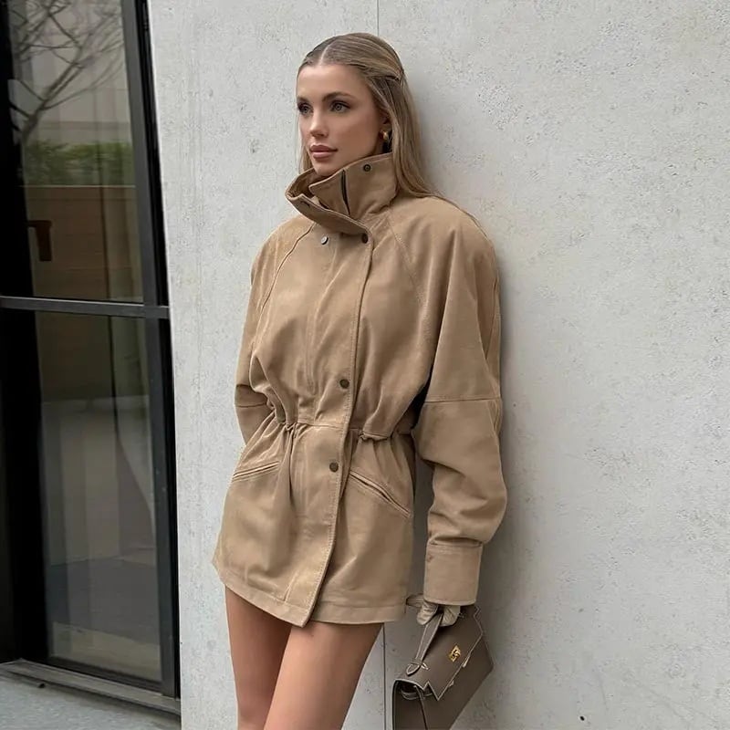 スウェード調 ジャケット コート スタンドカラー 韓国 海外 ストリート ベージュ ギャル 春 秋 アウター レディース 10AU-5