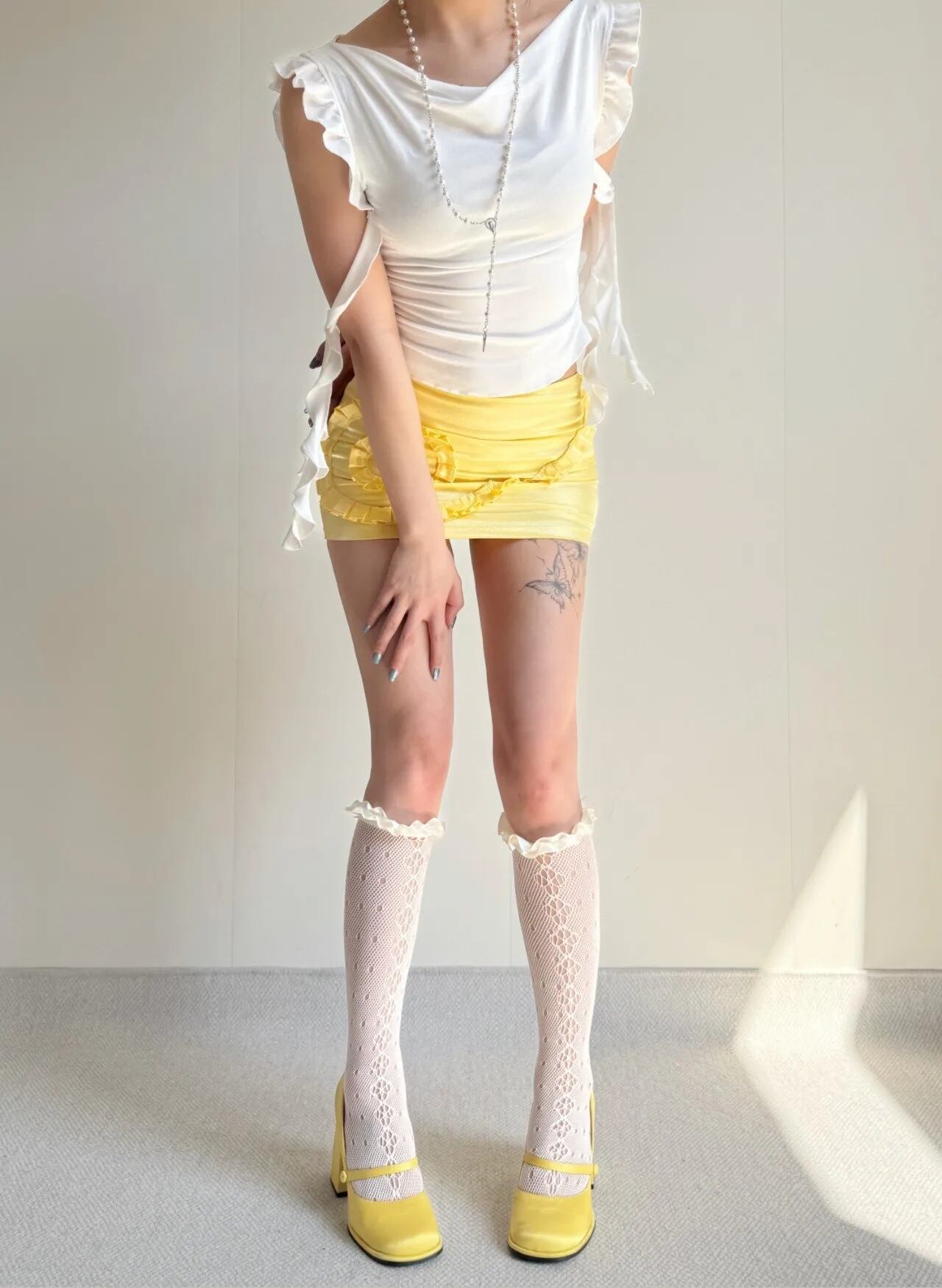 レース ハイソックス フリル グリーン ミント 花柄 靴下 韓国 バレエコア ガーリー Y2K ギャル レディース 10ACC-2