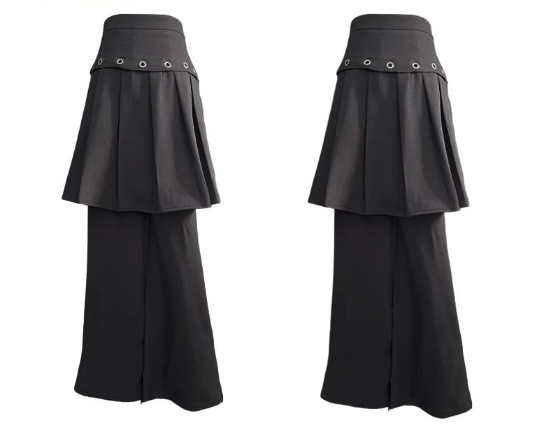 レイヤード スカート パンツ プリーツ スカパン 重ね着風 韓国 ストリート モード系 レディース 10PA-5