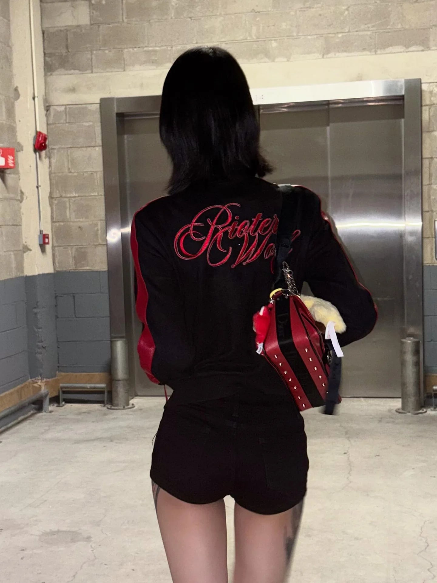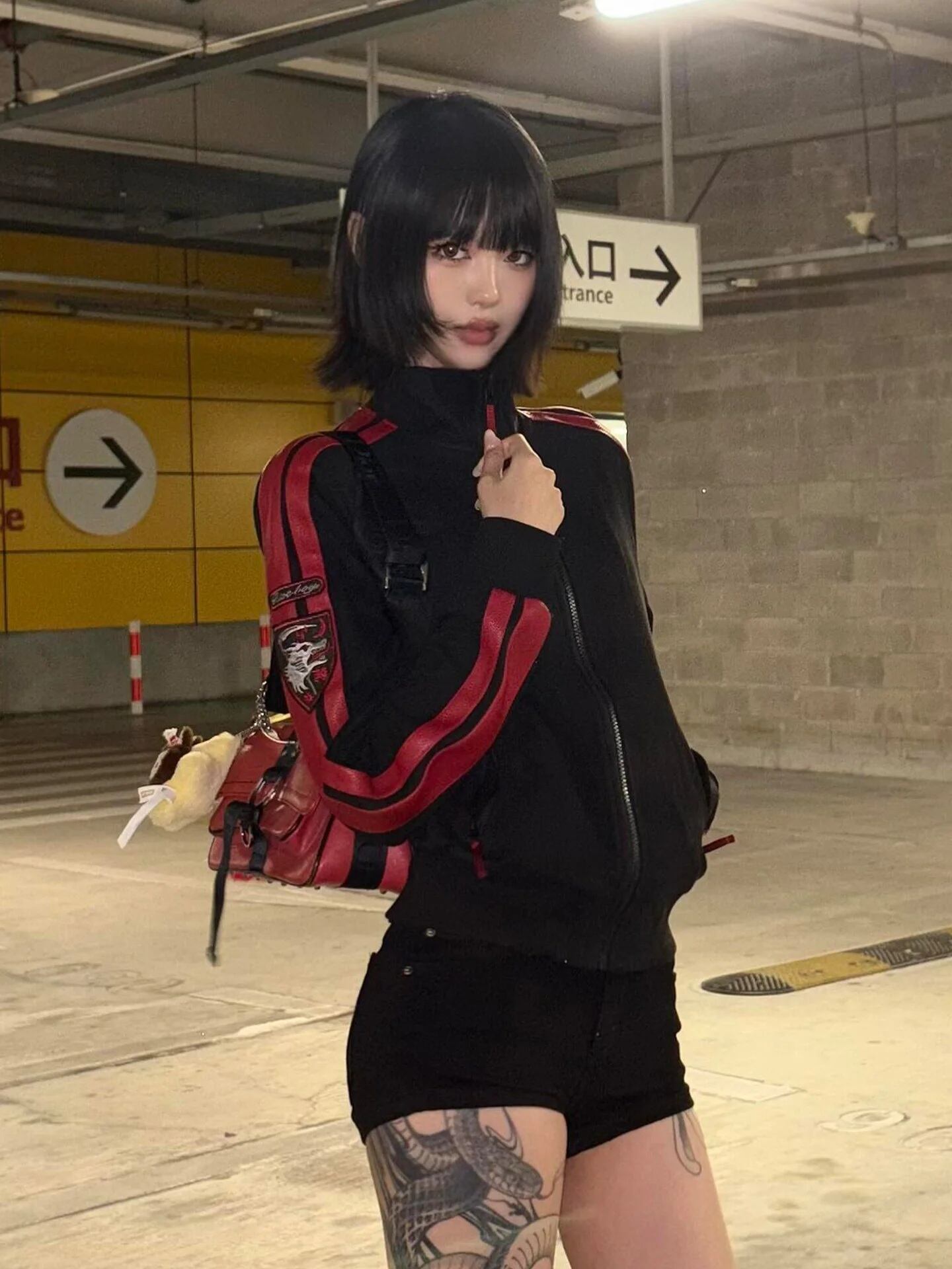 バイカー風 レーシング トラックジャケット ライン 韓国 ストリート 地雷系 サイバー Y2K ギャル ダンス 衣装 K-POP レディース 10AU-8