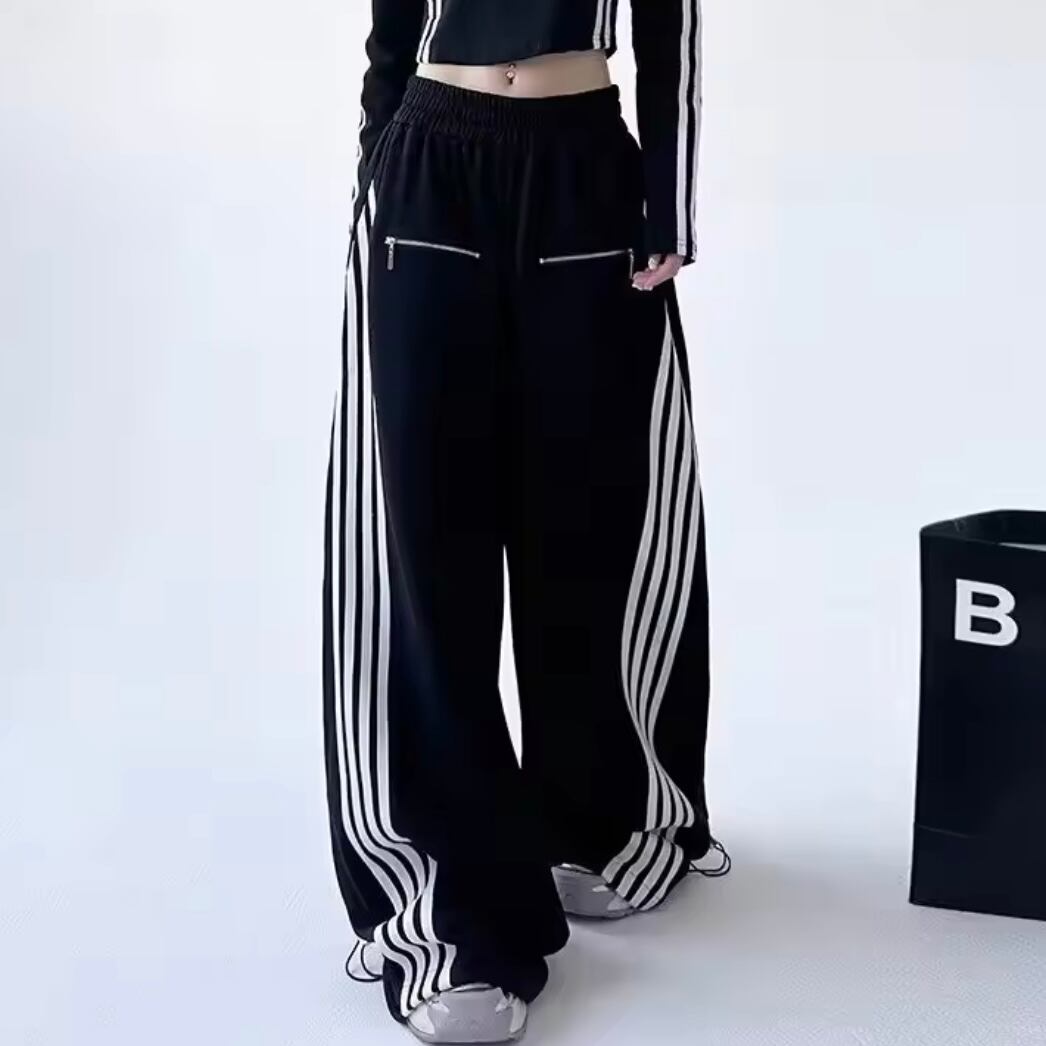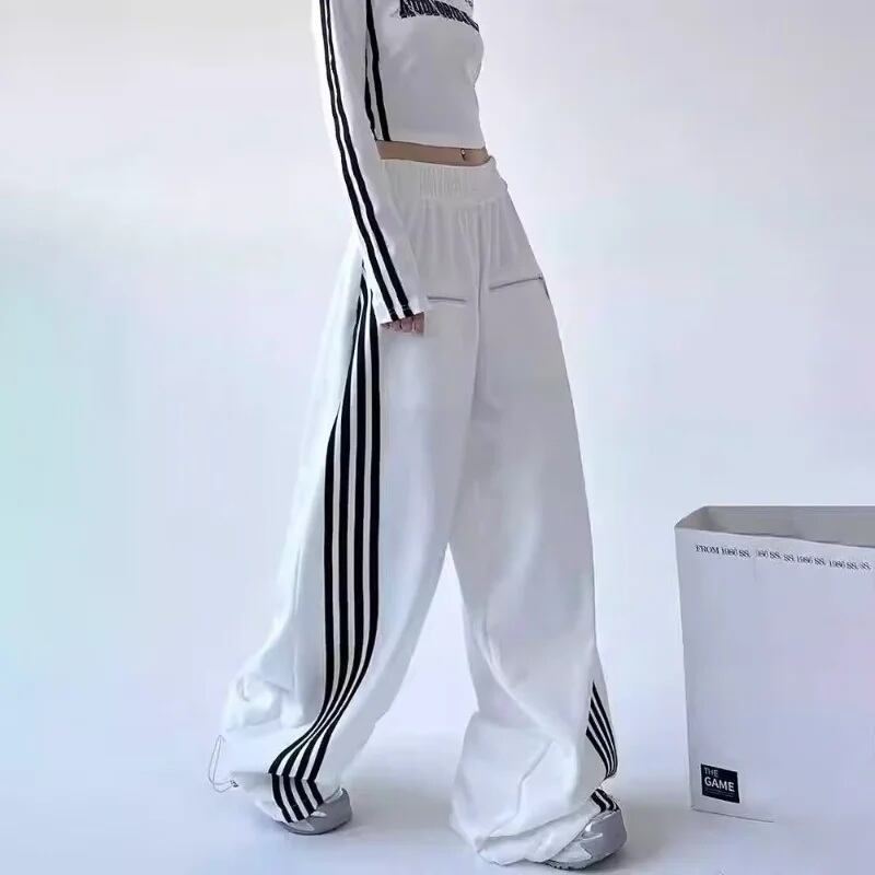ライン トラック パンツ ジャージ ワイド スウェット 韓国 ストリート Y2K サブカル 地雷系 ダンス 衣装 K-POP ドロスト 白 レディース 10PA-6