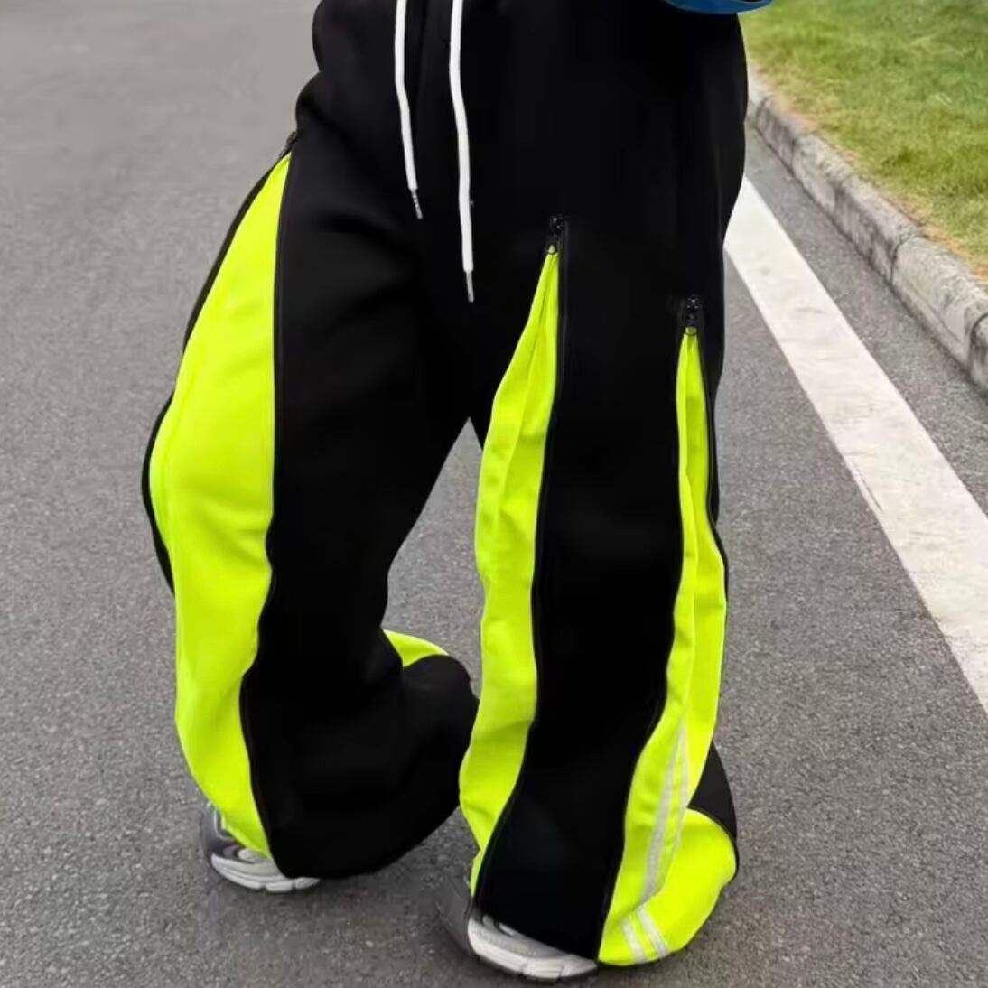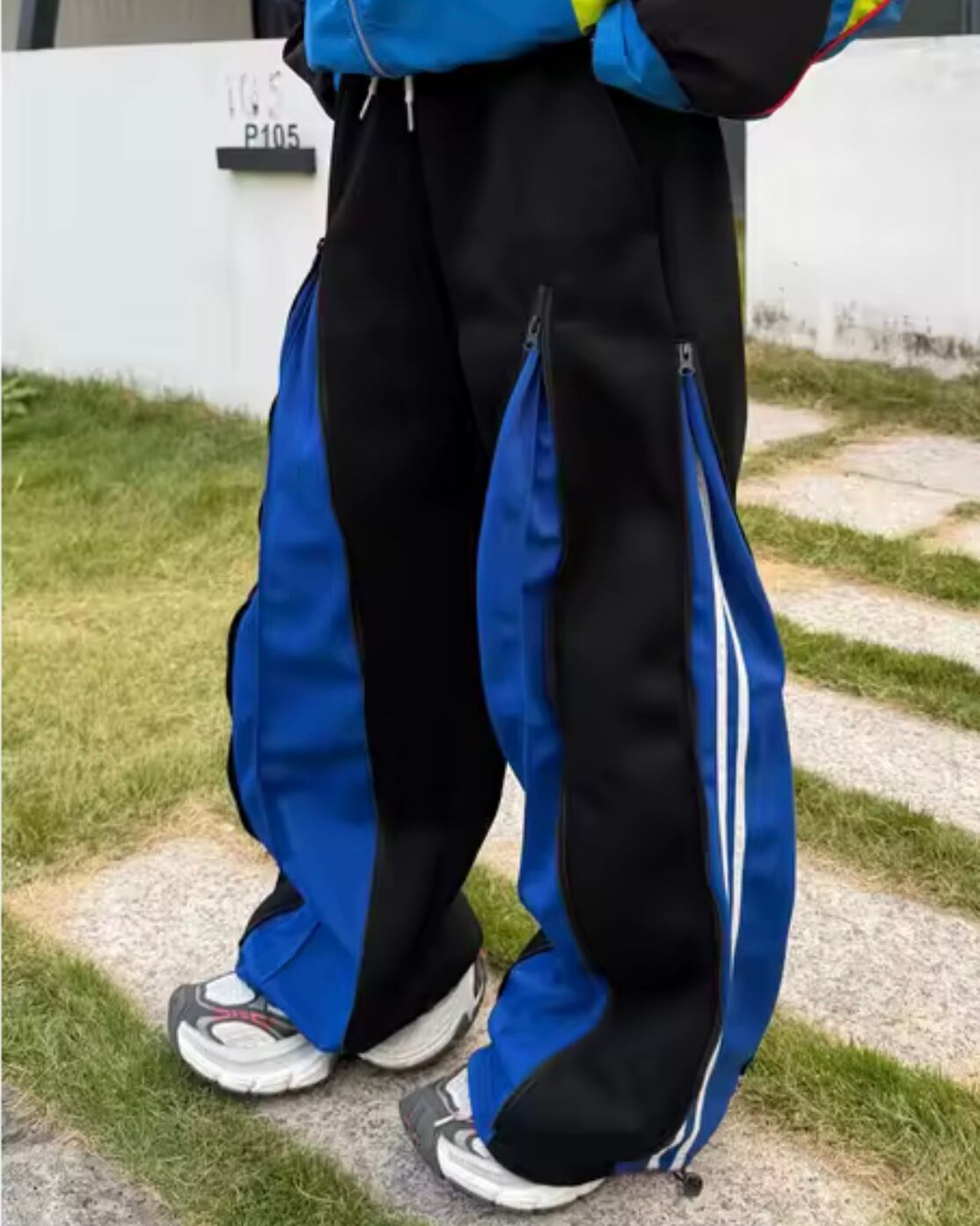 ★一見シンプルなトラックパンツに見えて、サイドのジップを開けば鮮やかなカラーが顔を出す。遊び心溢れるギミックと圧倒的なワイドシルエットを融合させた、主役級のテックパンツです♥