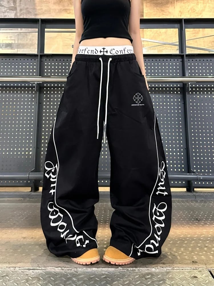 重ね着風 ウエスト ロゴ ワイド パンツ ボクサーパンツ 韓国 ストリート Y2K ダンス 衣装 K-POP ヒップホップ レディース 10PA-11