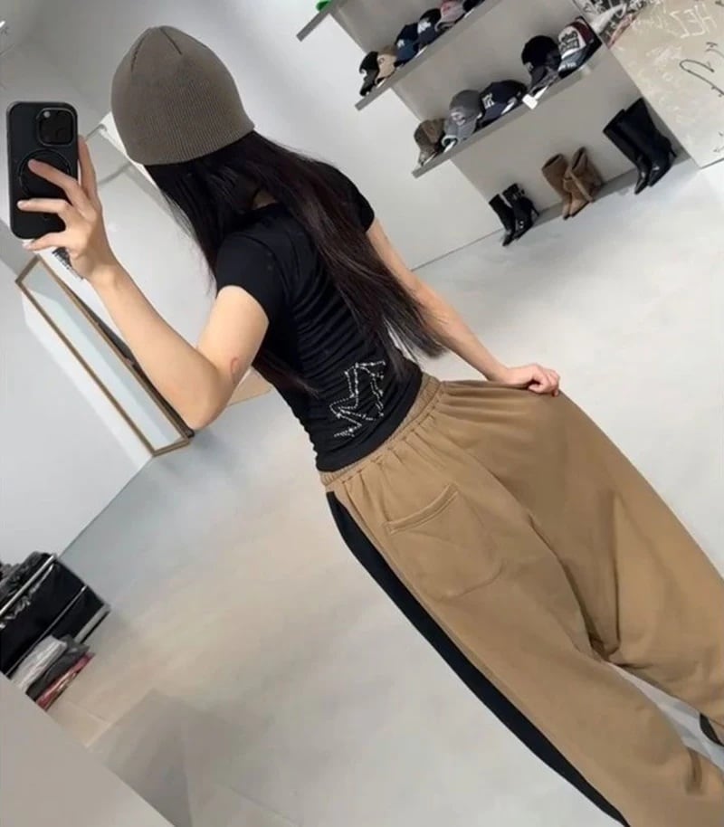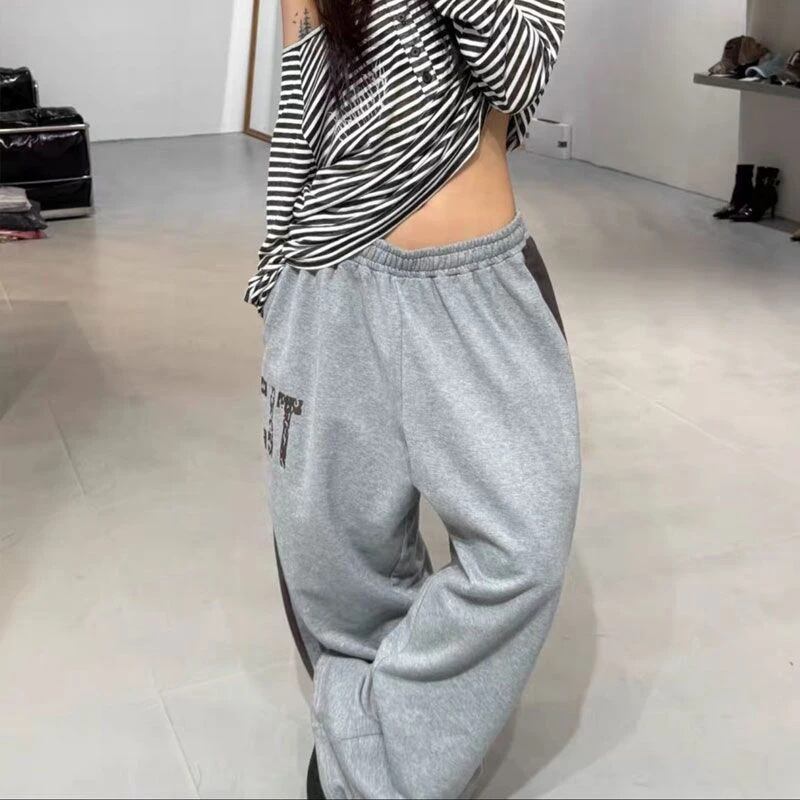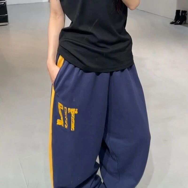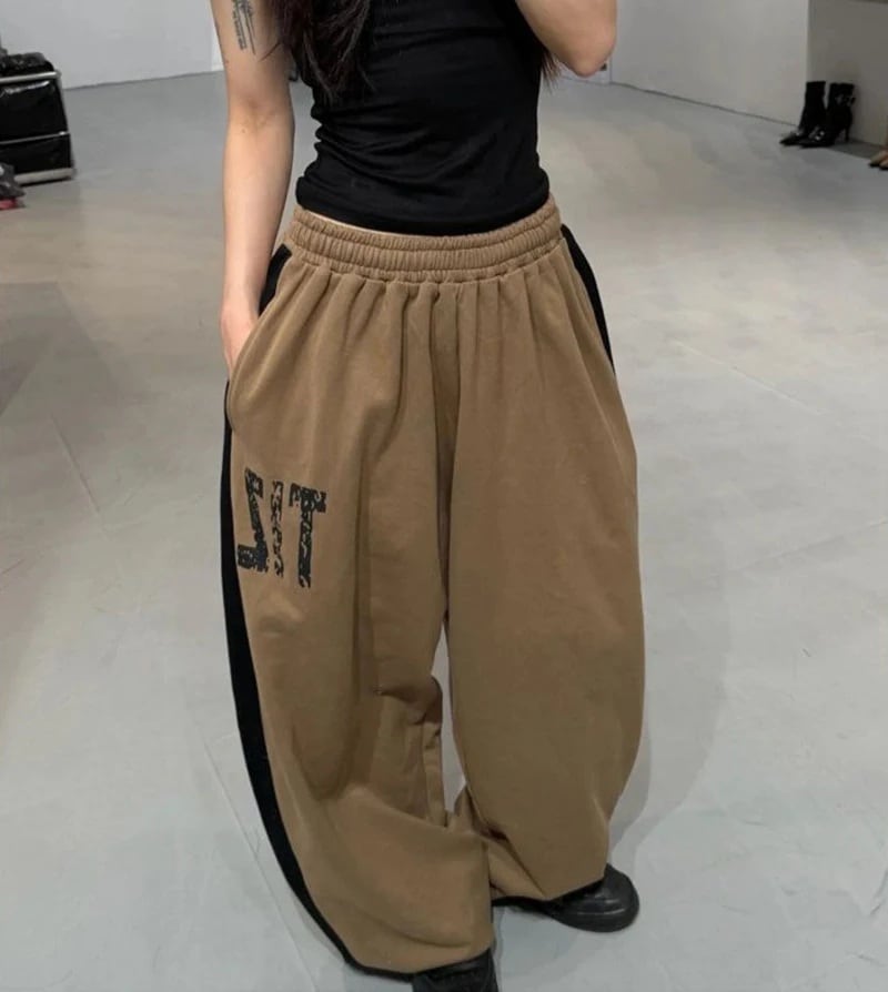 カレッジロゴ サイドライン スウェット パンツ 配色 韓国 ストリート Y2K ダンス 衣装 K-POP ヒップホップ レディース 10PA-12