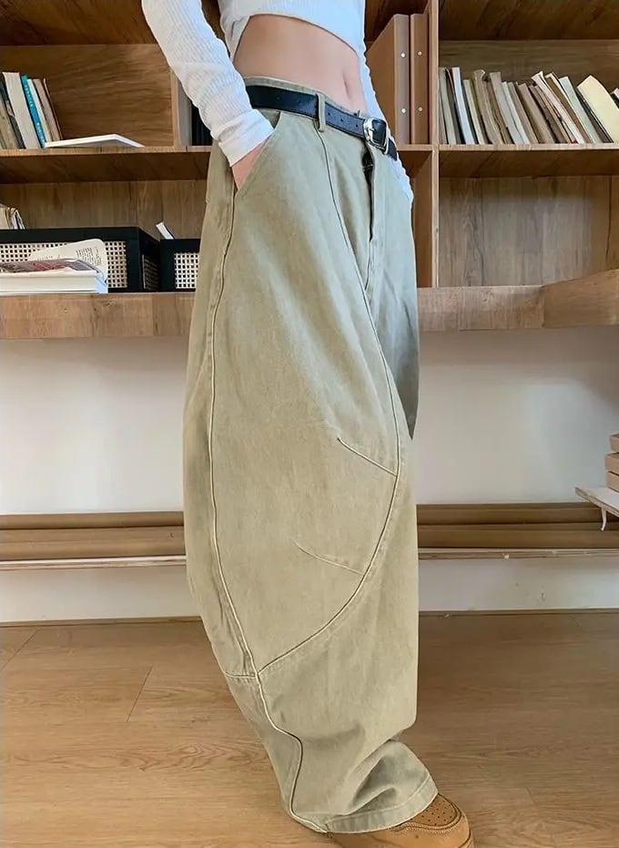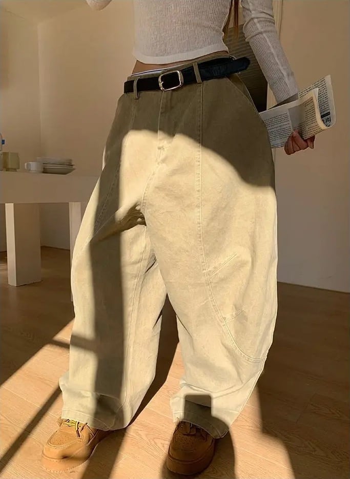 ワイド チノ パンツ コクーンパンツ 立体裁断 バギー ワークパンツ 韓国 ストリート Y2K ダンス 衣装 K-POP ヒップホップ レディース 10PA-15