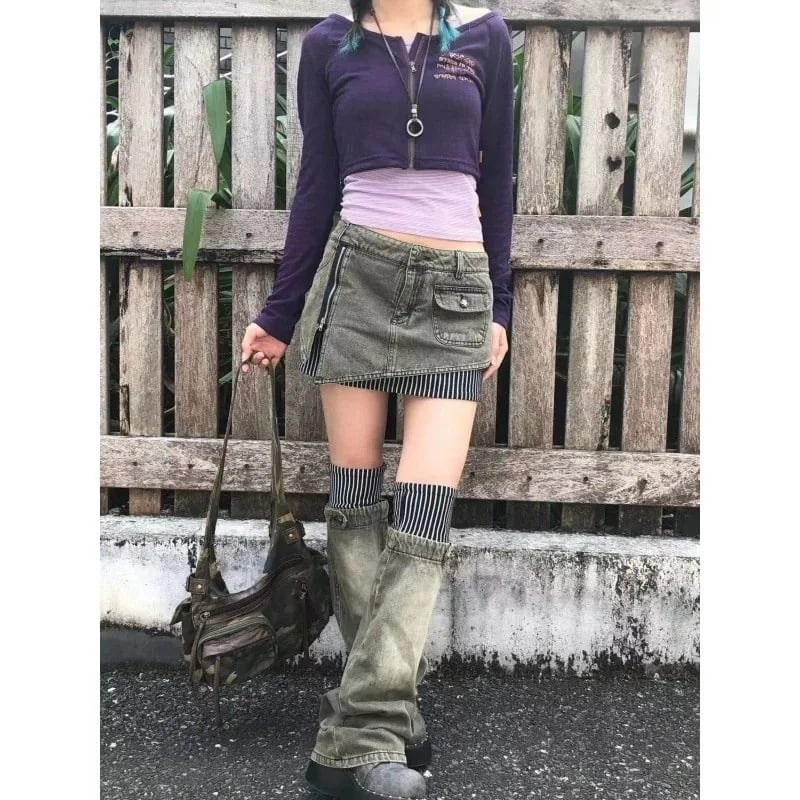 アンサンブル トップス カーディガン ボレロ キャミソール ロゴ ボーダー柄 韓国 ストリート Y2K 長袖 ショート丈 レディース 10T-18