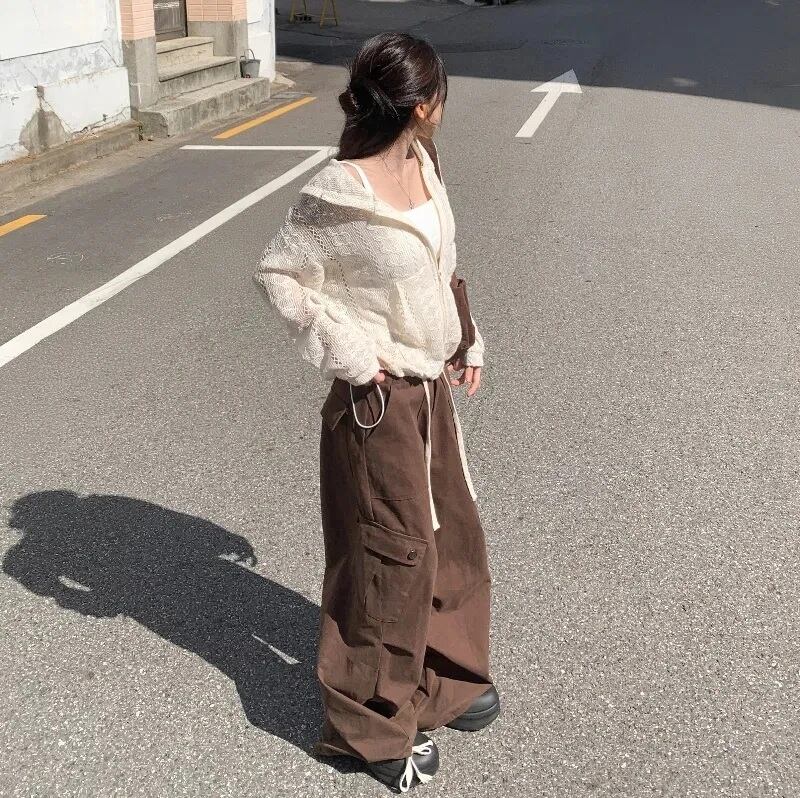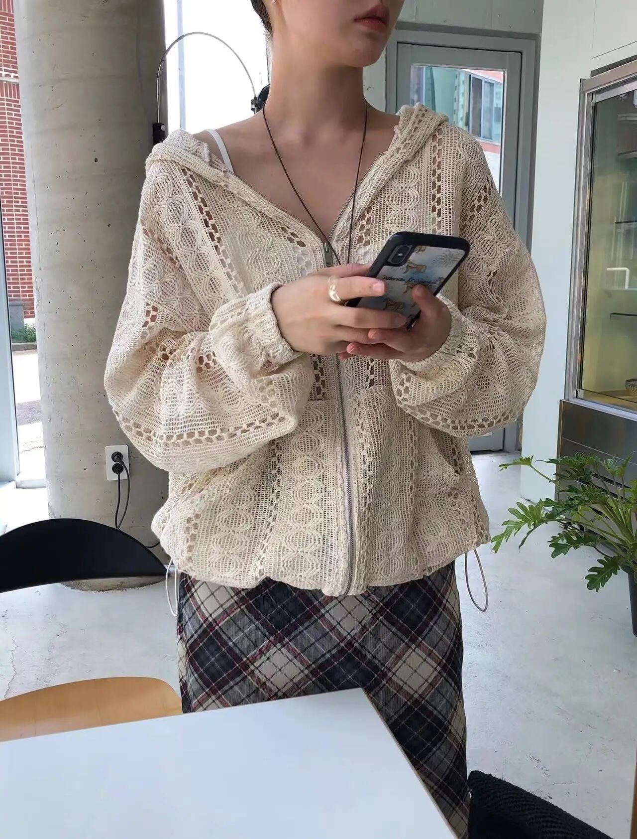 メッシュ サマーニット かぎ編み レース ジップアップ パーカー フーディー 韓国 ストリート バレエコア 夏 レディース 10T-21