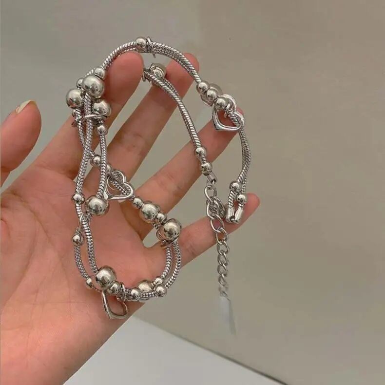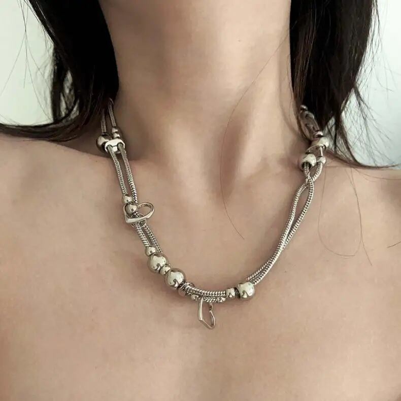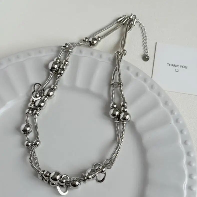 ボール マルチビーズ スネークチェーン 2連 ネックレス 変形 不規則 韓国 ストリート モード系 サイバー パンク Y2K レディース JW-591
