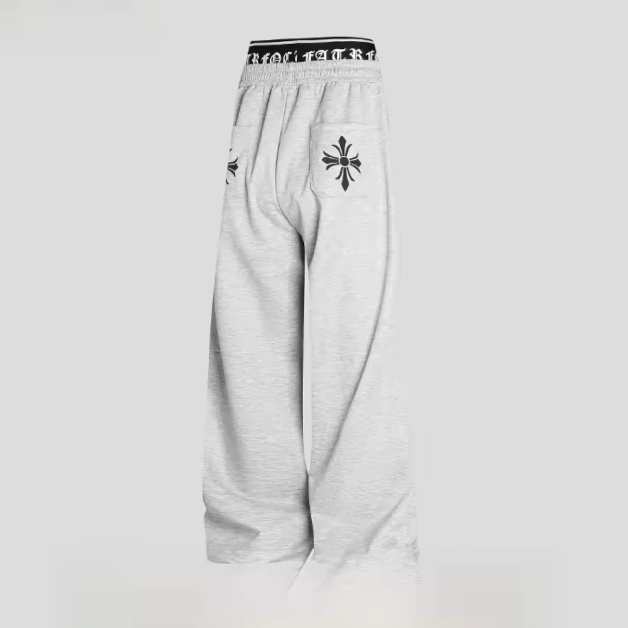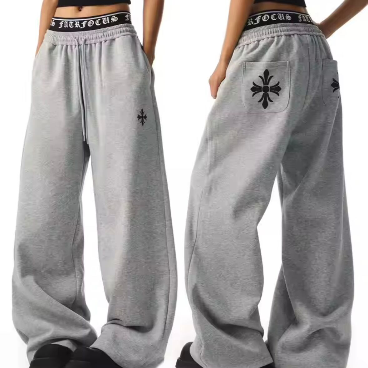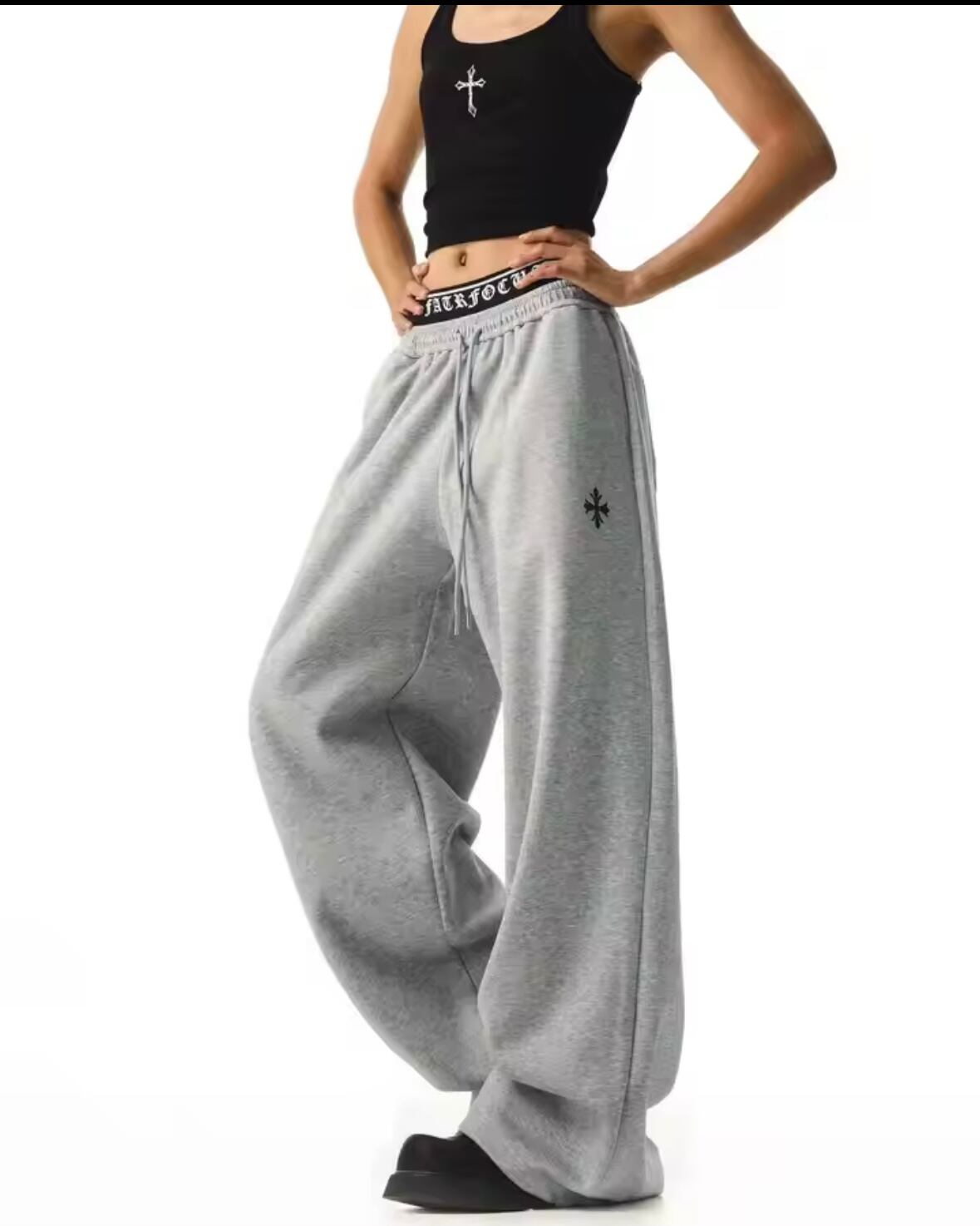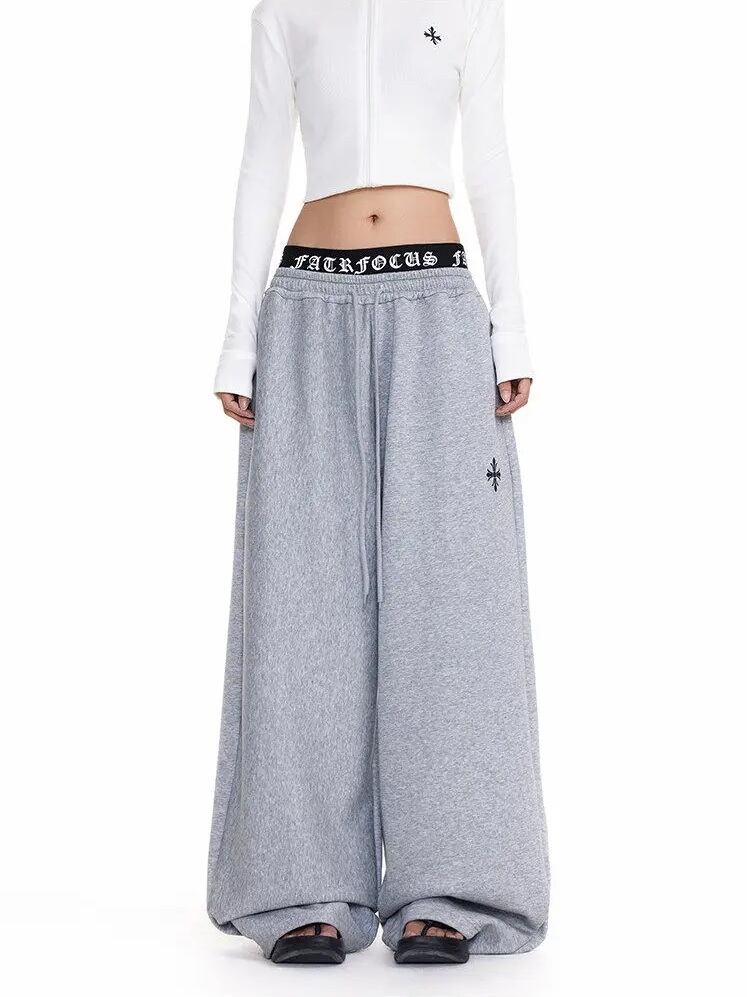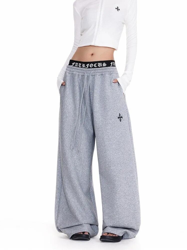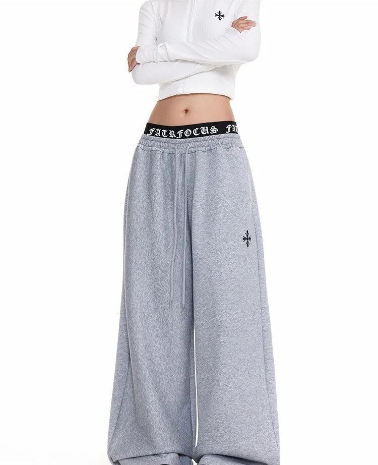 ロゴウエスト クロス 刺繍 ワイド スウェットパンツ バギーパンツ 重ね着風 見せパン 韓国 ストリート Y2K ダンス 衣装 K-POP HIPHOP レディース 10PA-16