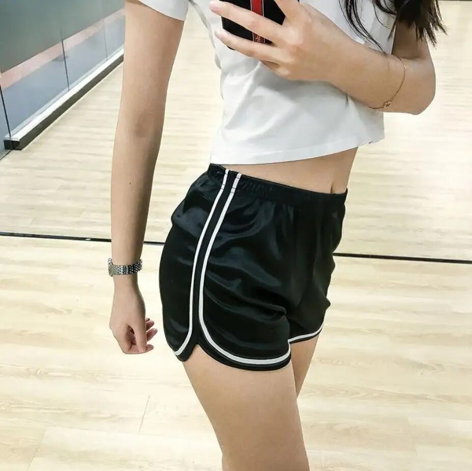 サテン ショート パンツ ライン パイピング 光沢 韓国 海外 ストリート Y2K ダンス 衣装 K-POP ギャル ジム 筋トレ レディース 10PA-19
