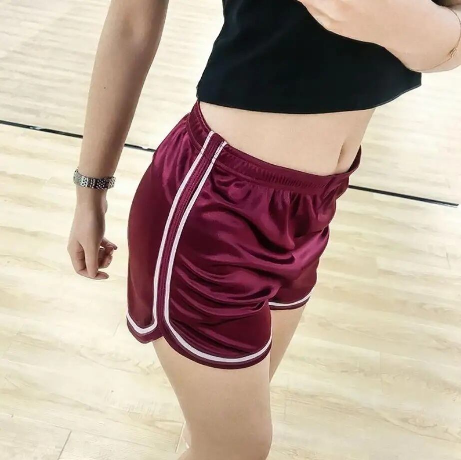 ★サテン素材がスポーティーな中にもラグジュアリーな色気を演出するサイドラインショートパンツ。
