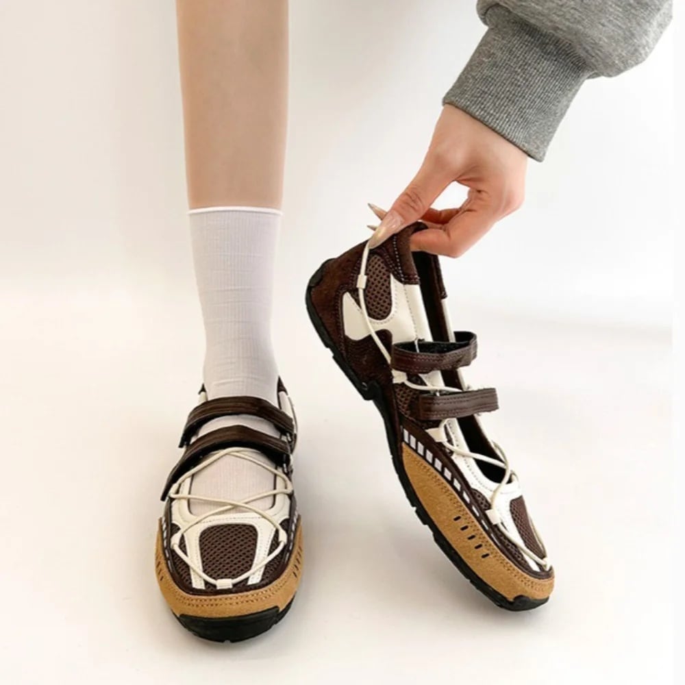 メリージェーン ストラップ スニーカー パンプス バレエシューズ ベルクロ 韓国 ストリート バレエコア カジュアル ポップ テック系 レディース 10SHO-2