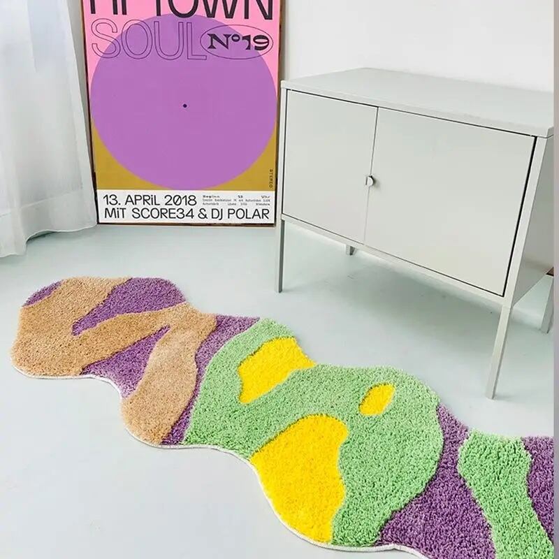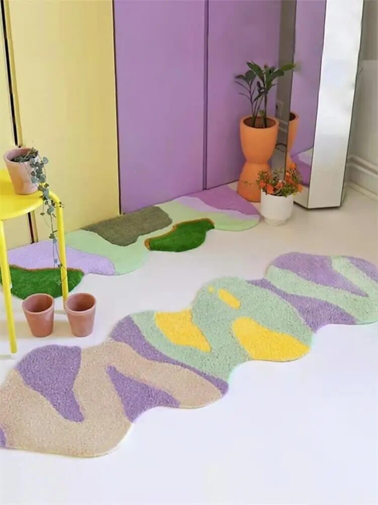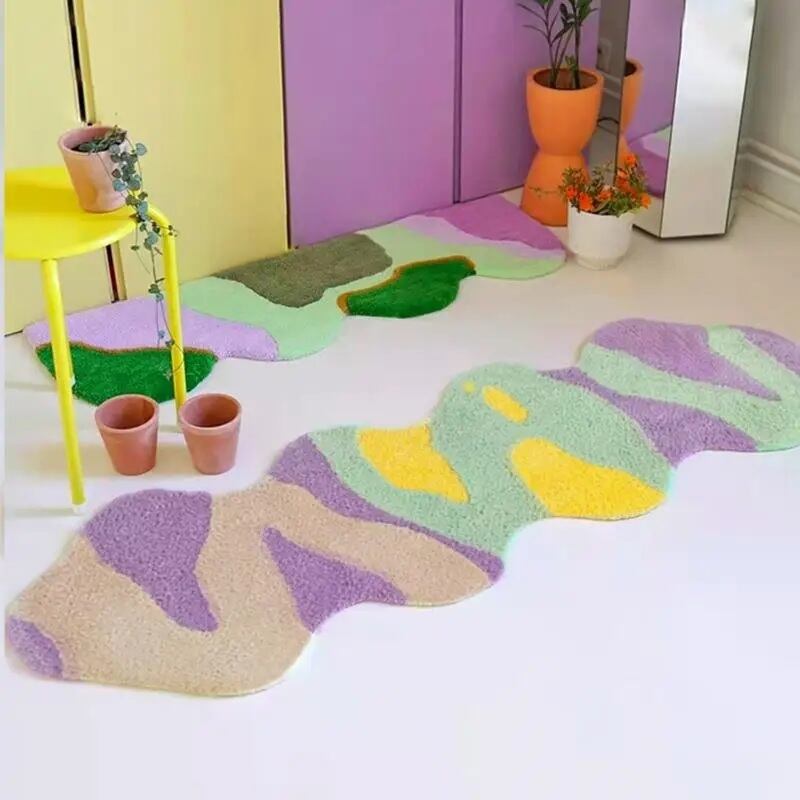 ラグマット 玄関マット ポップ 不規則 曲線 なみなみ アート 韓国 インテリア 雑貨 お洒落 カラフル マルチカラー ZA-126