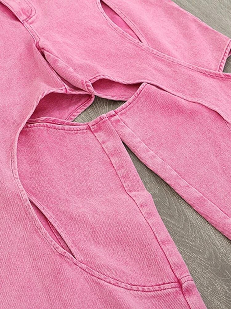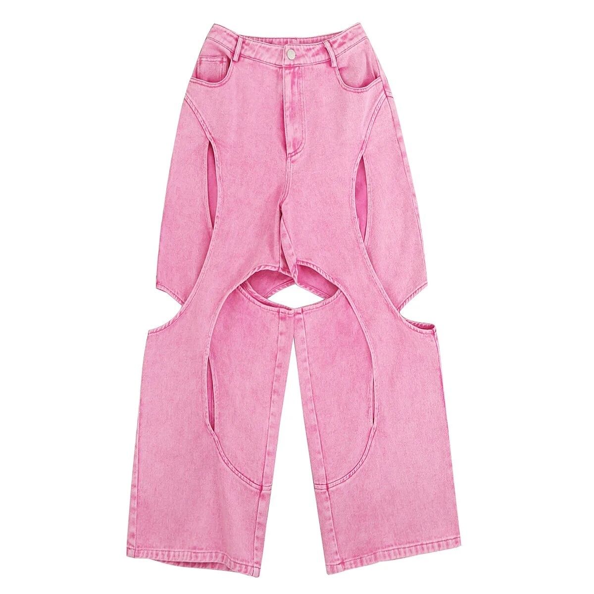 ★鮮やかなピンクと斬新なカットアウトデザインが融合した、存在感抜群のデニムパンツ♥