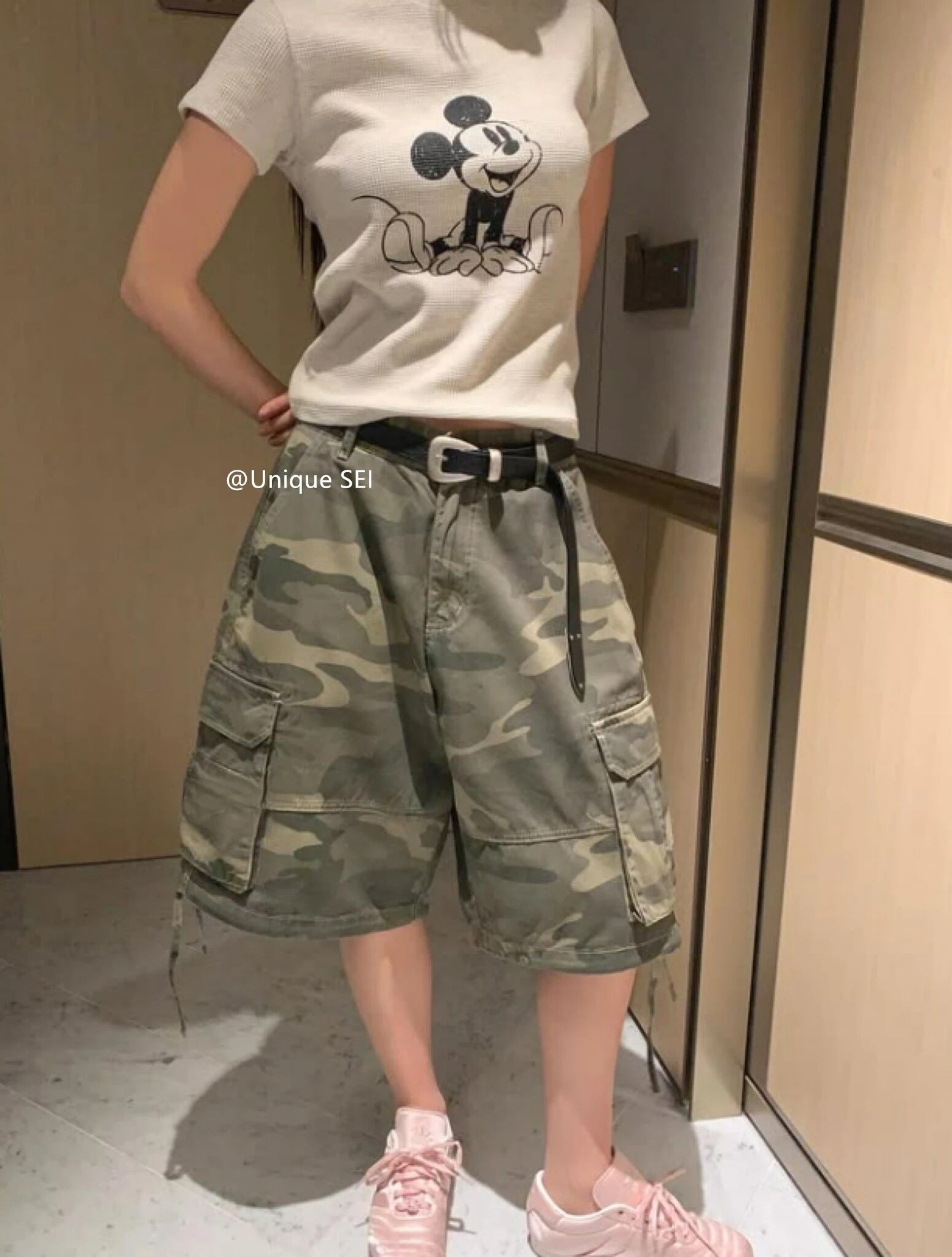 迷彩 カーゴ ハーフ パンツ カモフラ バミューダパンツ 韓国 ストリート Y2K ダンス 衣装 K-POP HIPHOP レディース 10PA-20