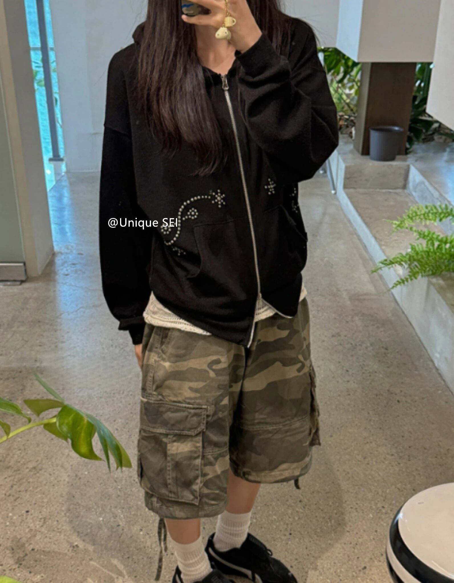 王道のカモフラージュ柄をルーズなシルエットに落とし込むことで、ミリタリーの無骨さと現代のストリートな抜け感を両立させた一着です。