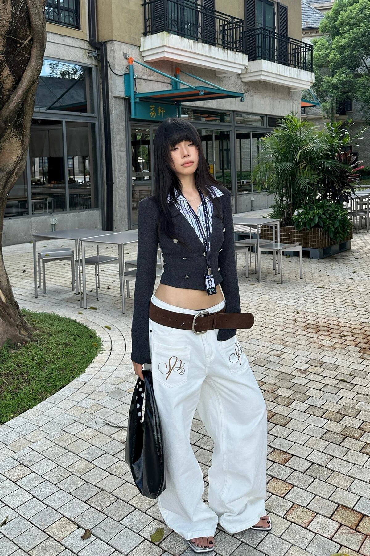 シャツの裾をあえて見せないショート丈デザインが、ウエストラインを美しく強調し、脚長効果を発揮します。