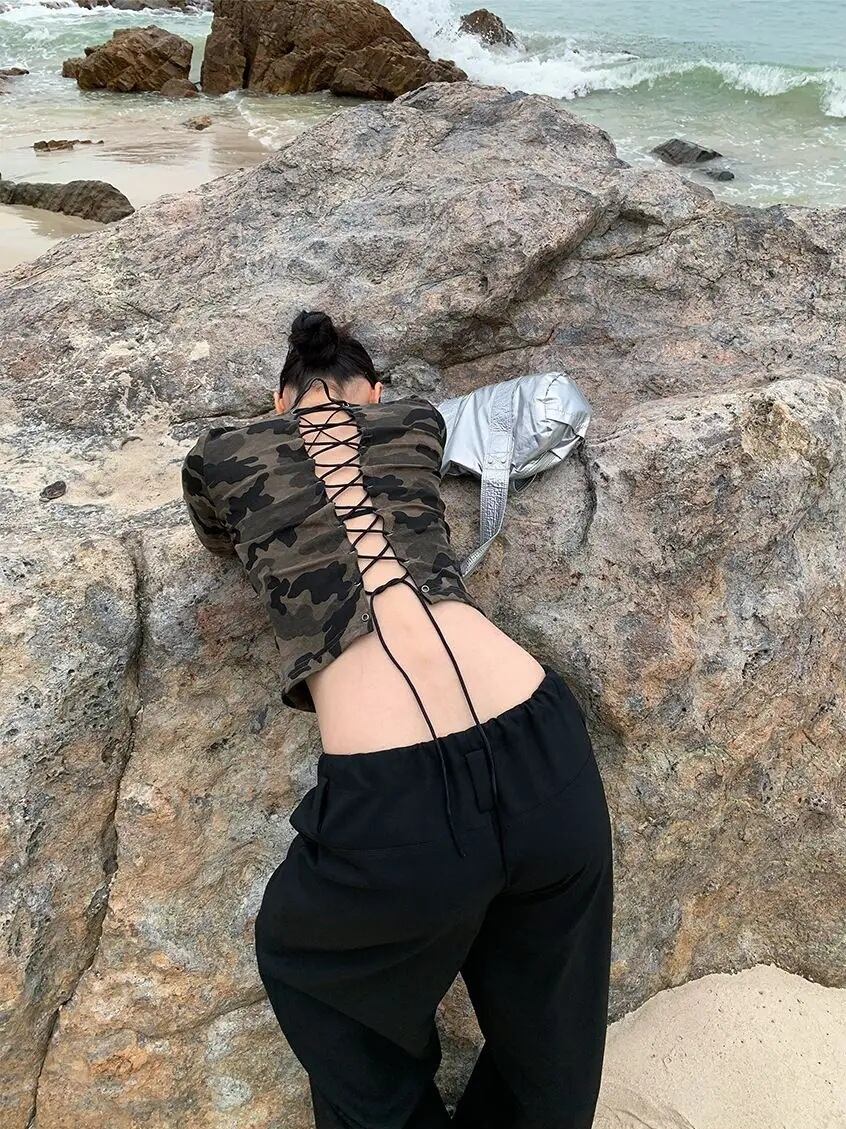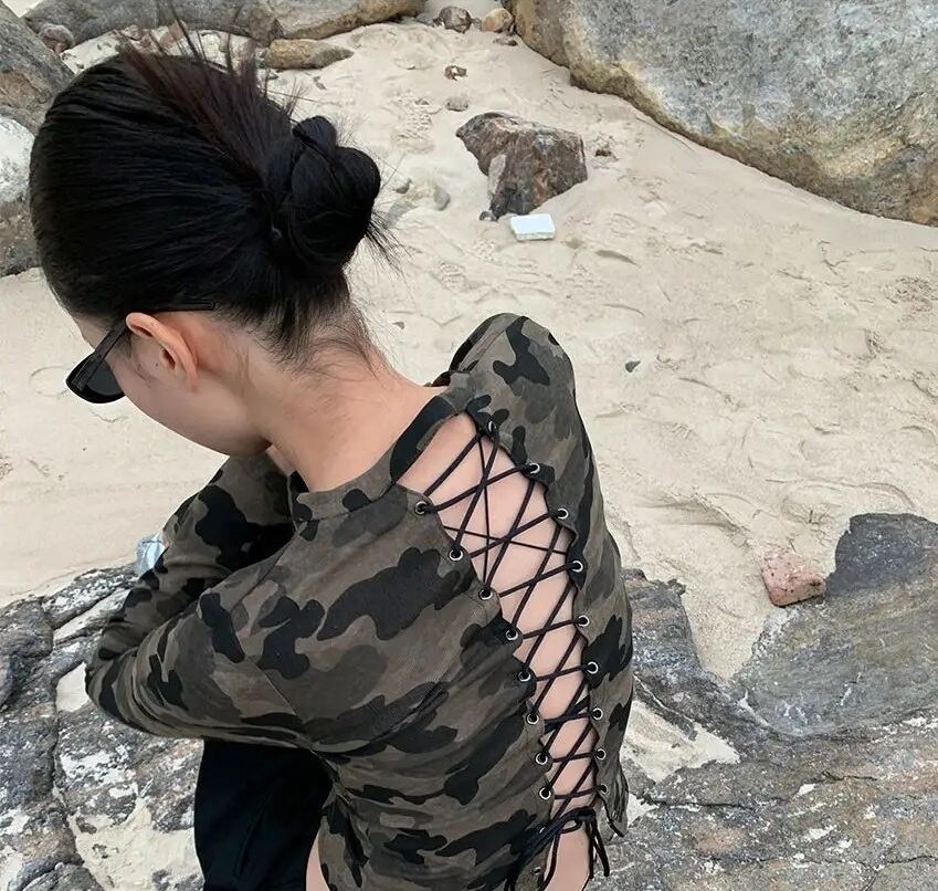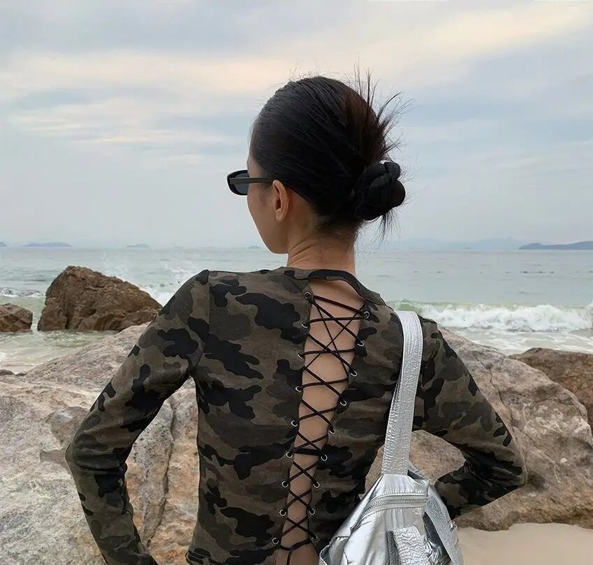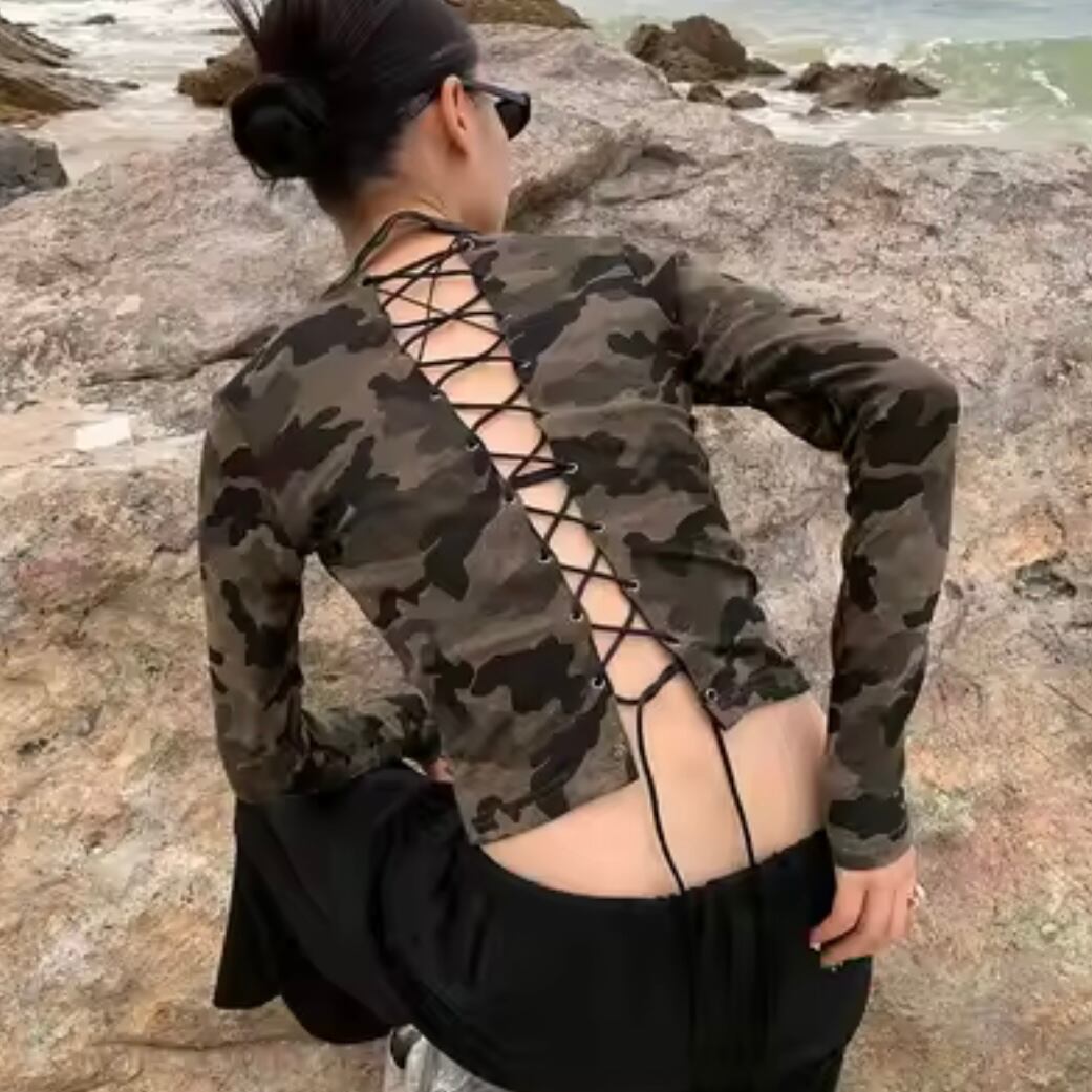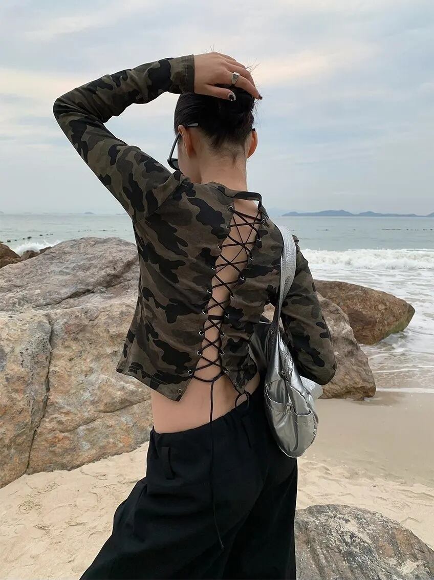 ★迷彩柄に、大胆なバックレースアップをプラス。