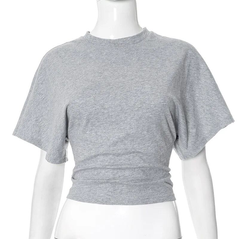 ドルマン Tシャツ 半袖 トップス 袖コンシャス ウエストシェイプ 海外 韓国 ストリート 無地 ショート丈 クロップド レディース 10T-38