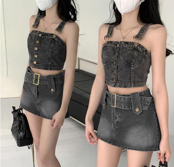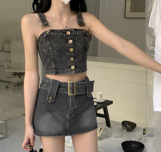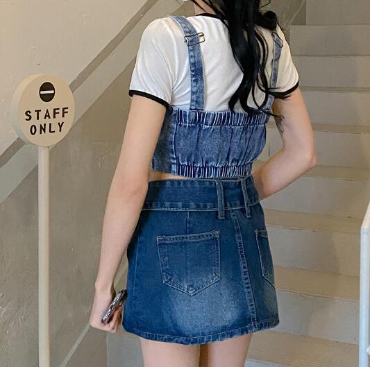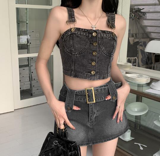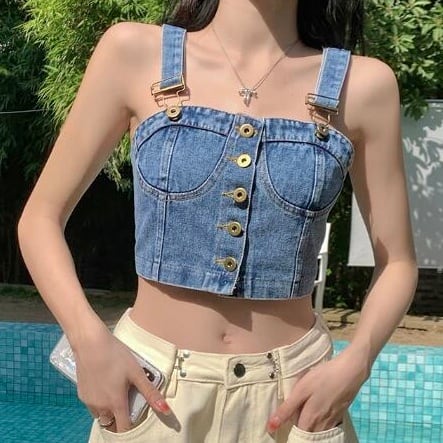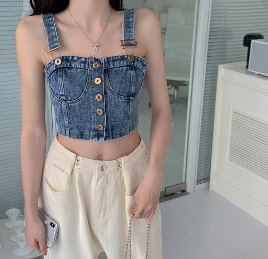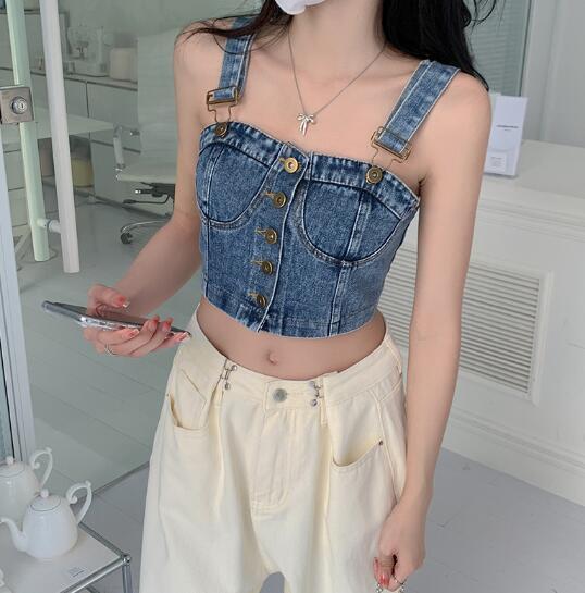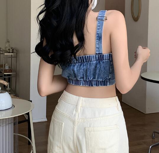 デニム ビスチェ キャミ ショート丈 韓国 ストリート系 Y2Kファッション ダンス K-POP レディース 6J-48