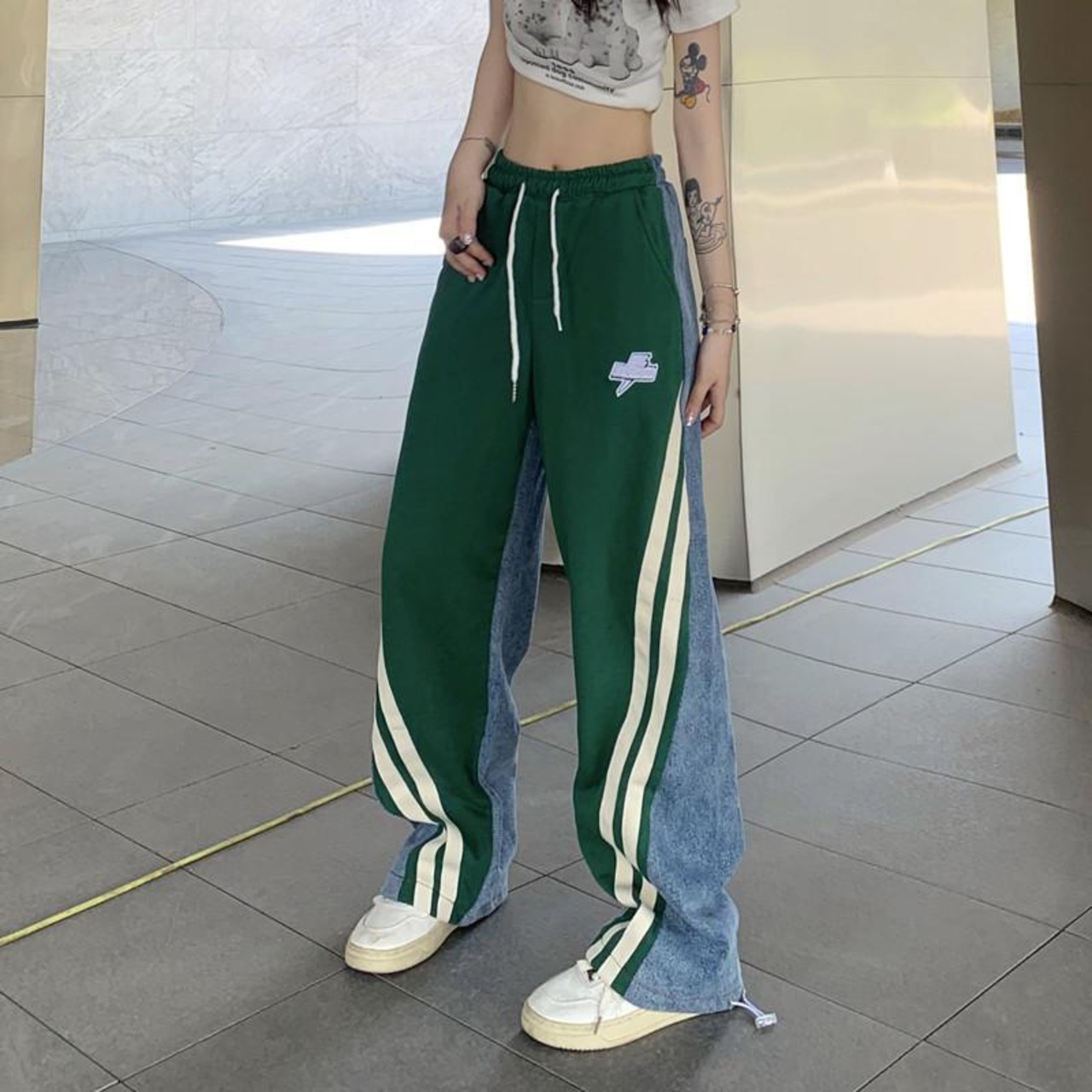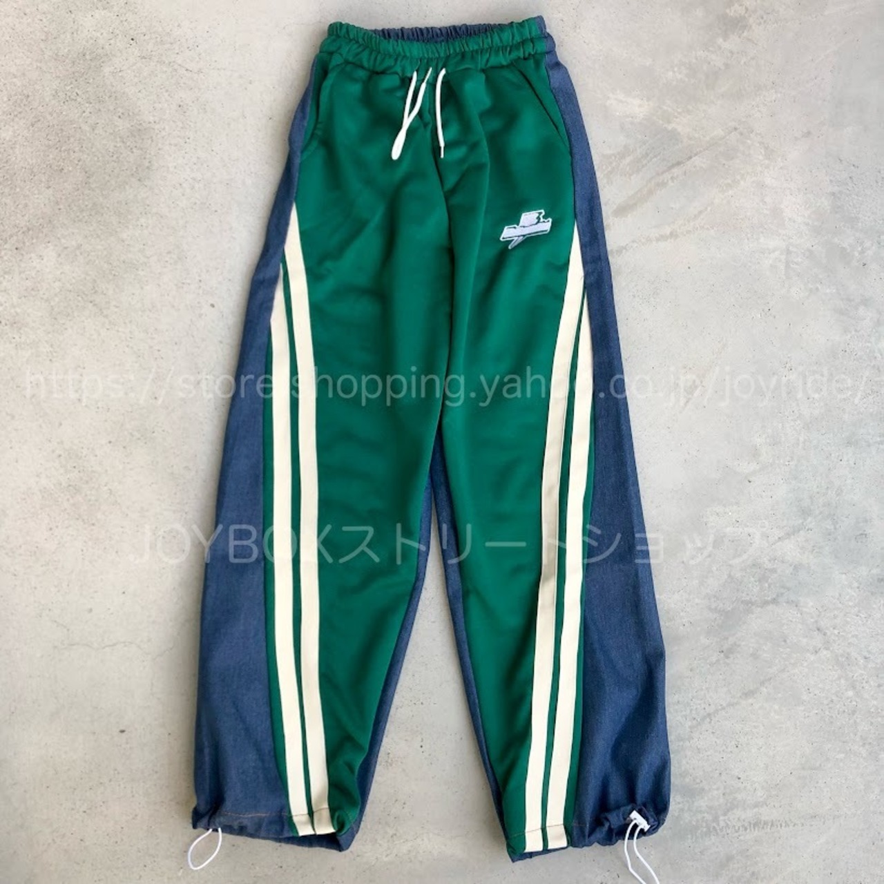 デニム 切替 ラインパンツ トラックパンツ ジャージ 韓国 ストリート HIPHOP 原宿系 K-POP ダンス 衣装 レディース 6PA-199