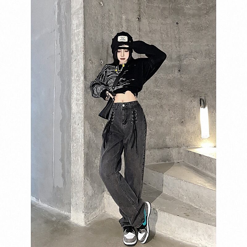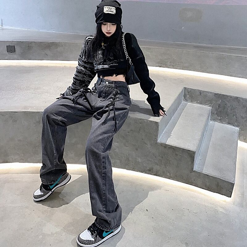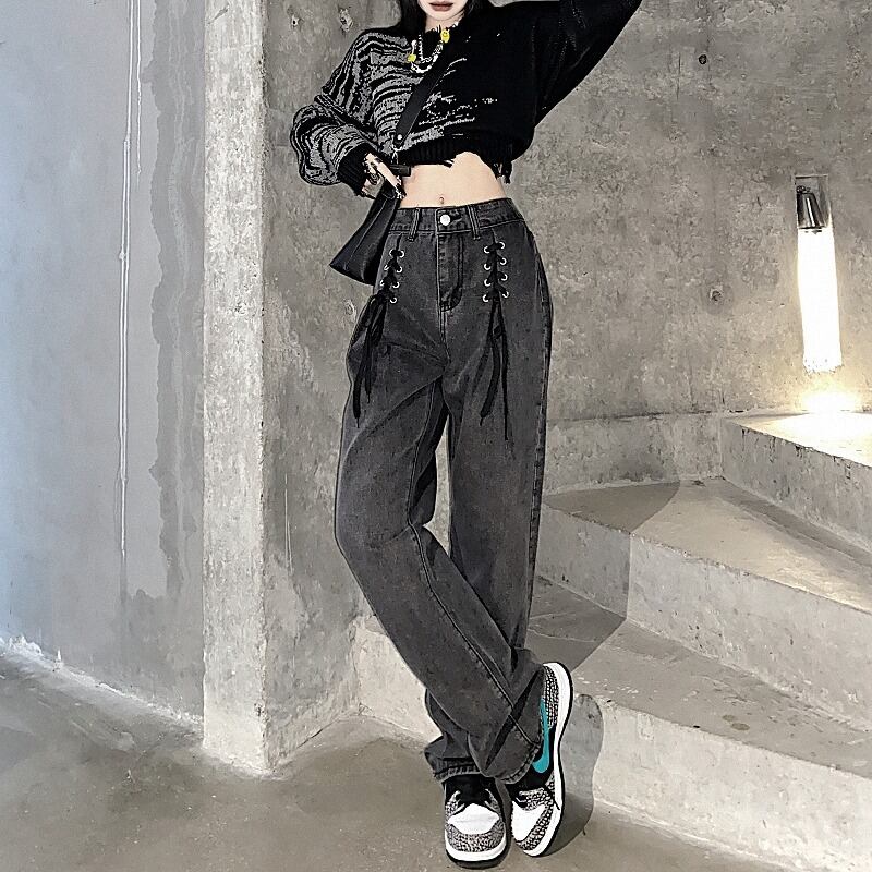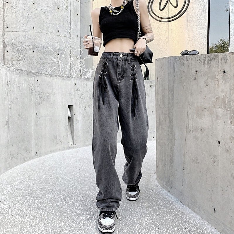 編み上げ デニム パンツ ジーンズ 韓国 ストリート Y2K ダンス 衣装 K-POP HIPHOP レディース ファッション 5J-457