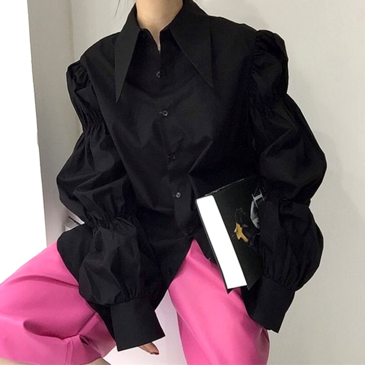 ボリューム袖 シャツ 長袖 パフスリーブ 韓国 ストリート モード系女子 トップス レディース 5T-686
