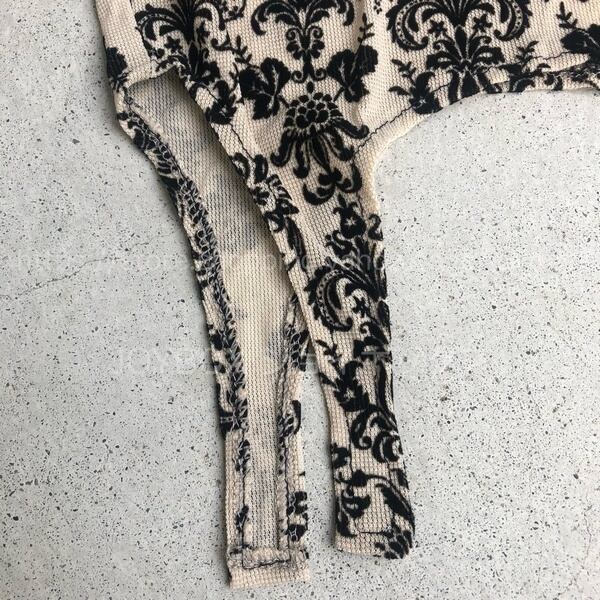 花柄 変形 ロンT Tシャツ アシメ 長袖 トップス ダマスク アラベスク柄 ショート丈 韓国 ストリート系 ダンス 衣装 K-POP HIPHOP ギャル レディース 7T-90
