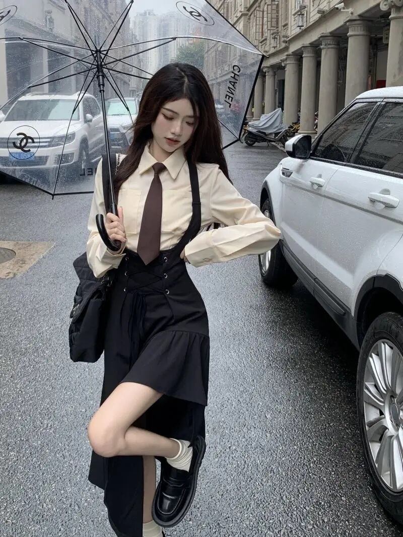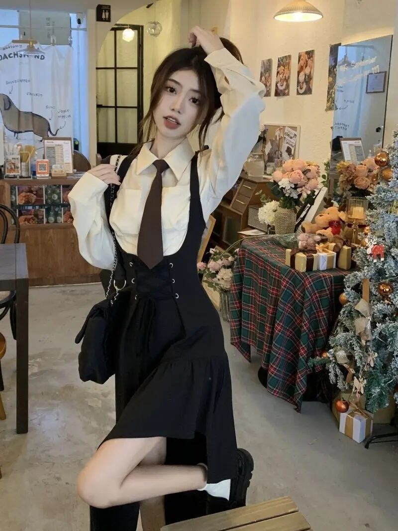 フィッシュテール ロング ワンピース 編み上げ 変形 アシメ ハイウエスト セットアップ 韓国 ストリート モード系 ギャル レディース 7OP-16