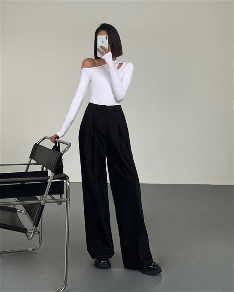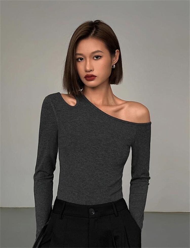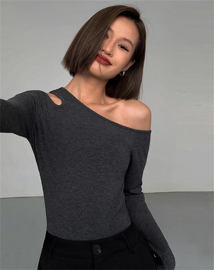 オフショル Tシャツ ロンT アシメ 変形 長袖 トップス 韓国 ストリート系 モード系 ギャル レディース 7T-133