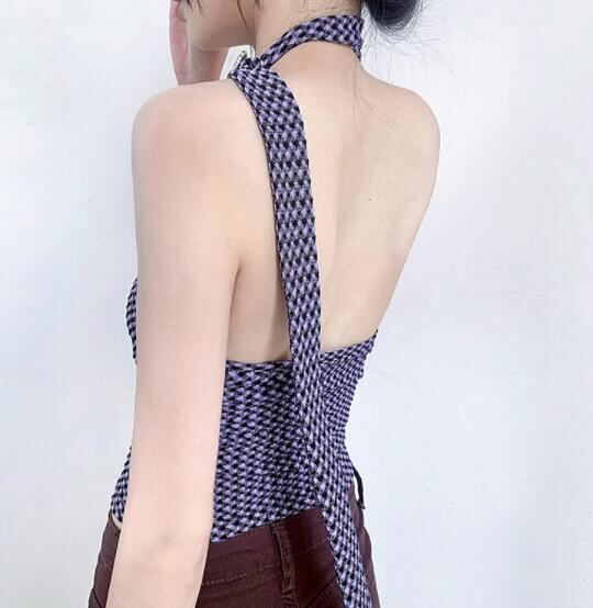 チェック柄 ホルターネック アシメ 変形 ビスチェ キャミソール チョーカー 韓国 ストリート系 Y2K ダンス 衣装 K-POP ギャル 夏 レディース ファッション 7T-151