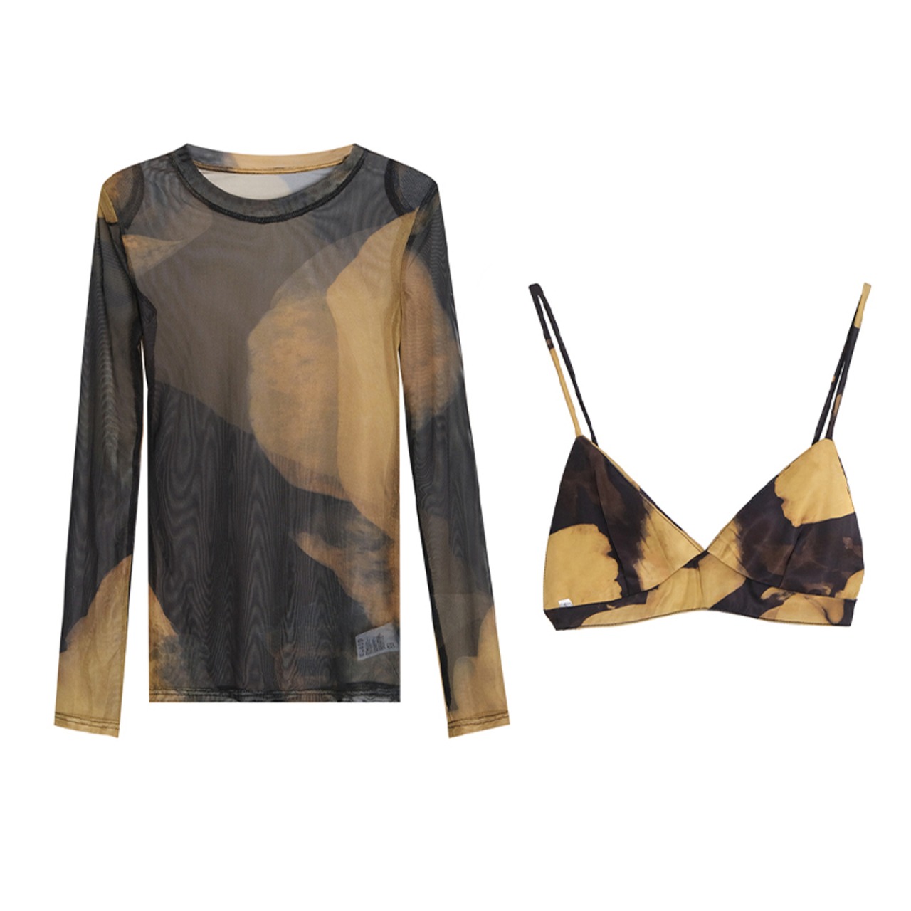 シースルー シアー ロンT トップス Tシャツ タイダイ 長袖 韓国 ストリート モード系 ダンス 衣装 HIPHOP K-POP レディース 7T-206