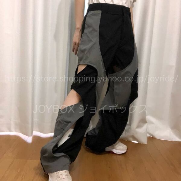 重ね着風 パンツ スラックス バイカラー 韓国 ダンス 衣装 ストリート Y2Kファッション モード系 HIPHOP K-POP レディース 7PA-65