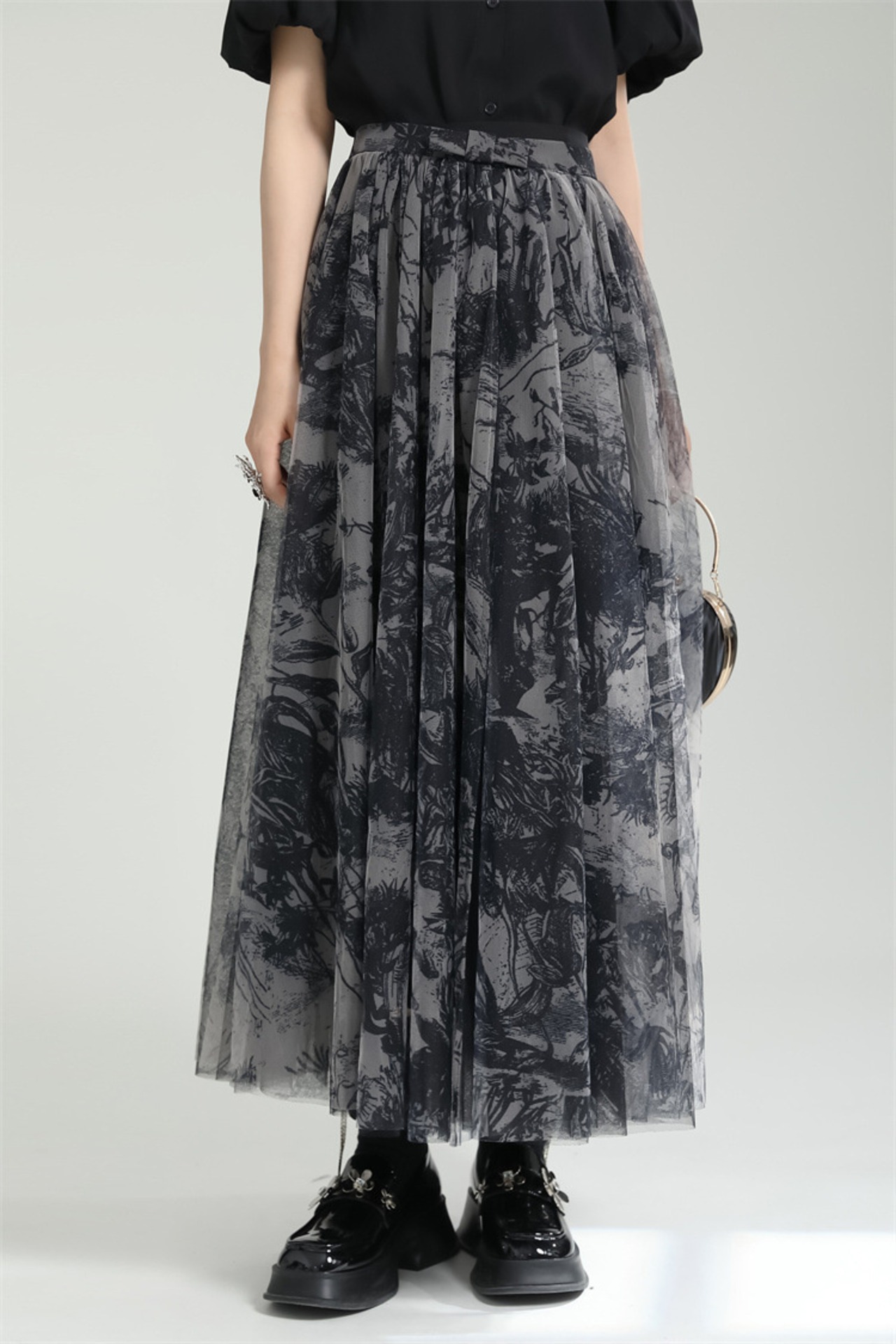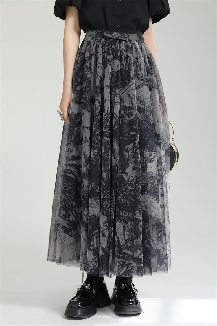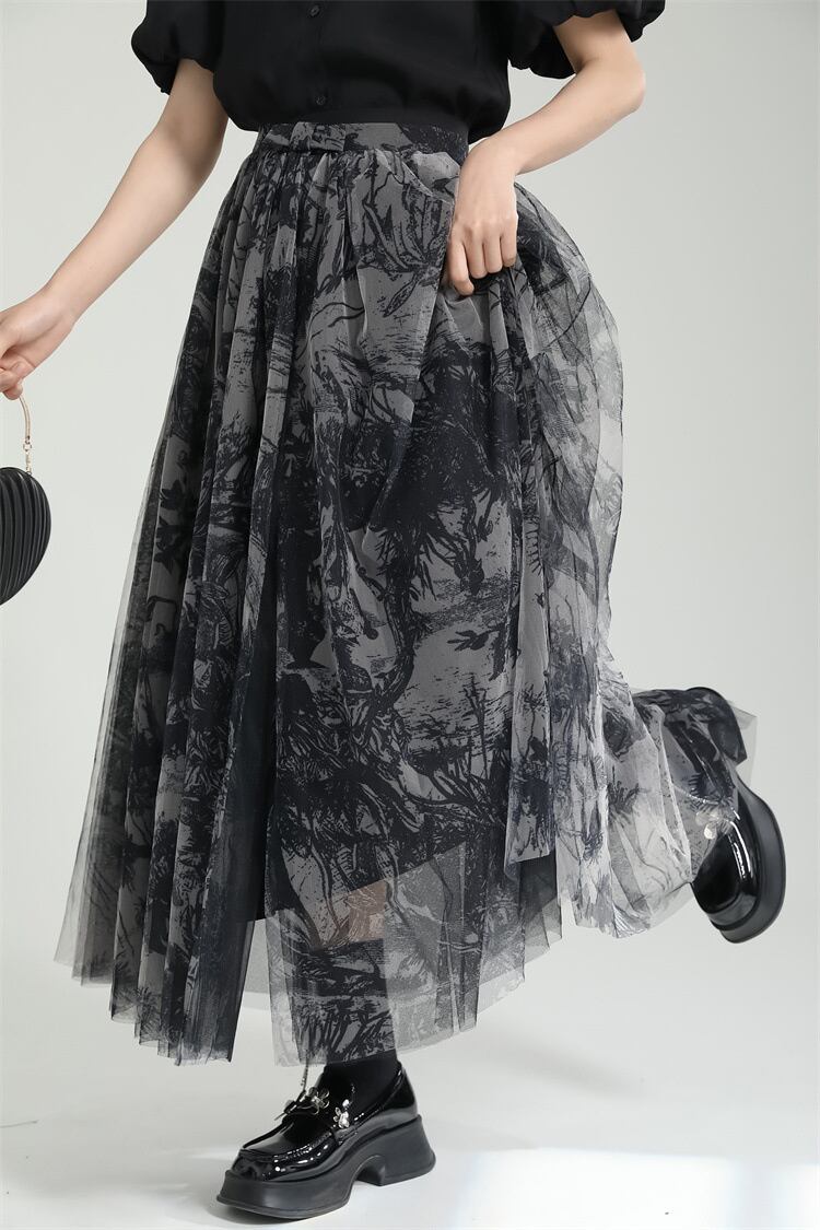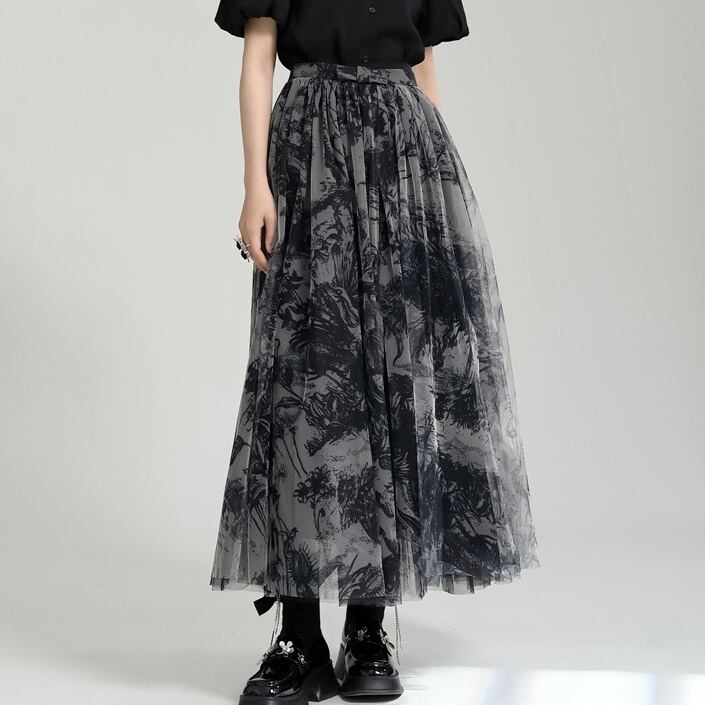 チュール ロング スカート 和柄 韓国 ストリート モード系 黒 多系統 レディース 7SK-60