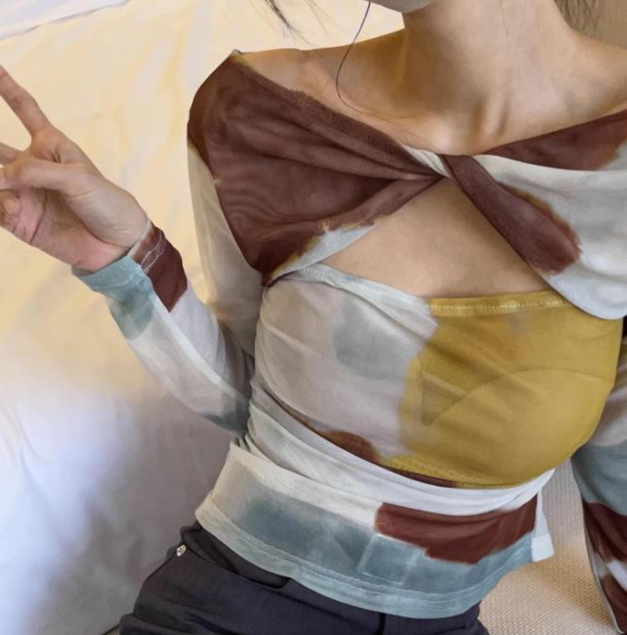 タイダイ柄 長袖 トップス ロンT Tシャツ 重ね着風 韓国 ストリート Y2K ダンス 衣装 K-POP 多系統 レディース ファッション 7T-298