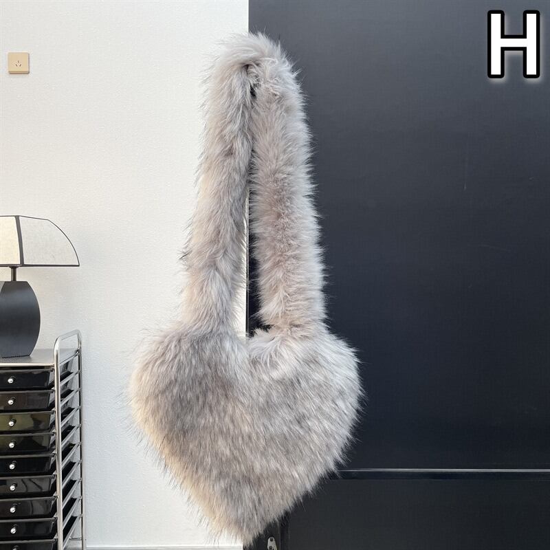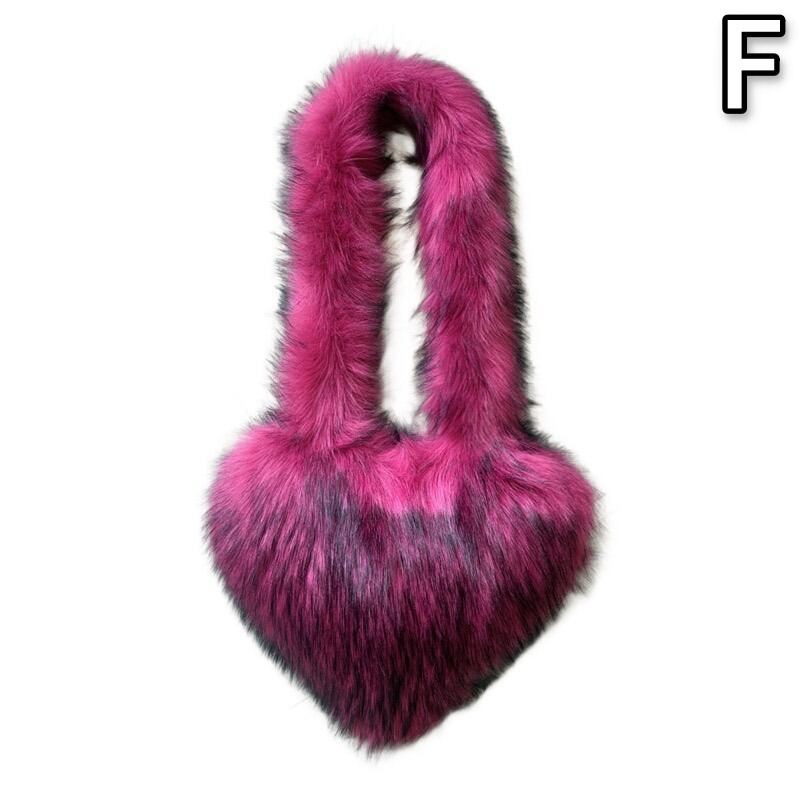 ハート型 ファー ショルダー バッグ 韓国 ストリート Y2Kファッション 海外 ギャル 冬 レディース 7BA-25