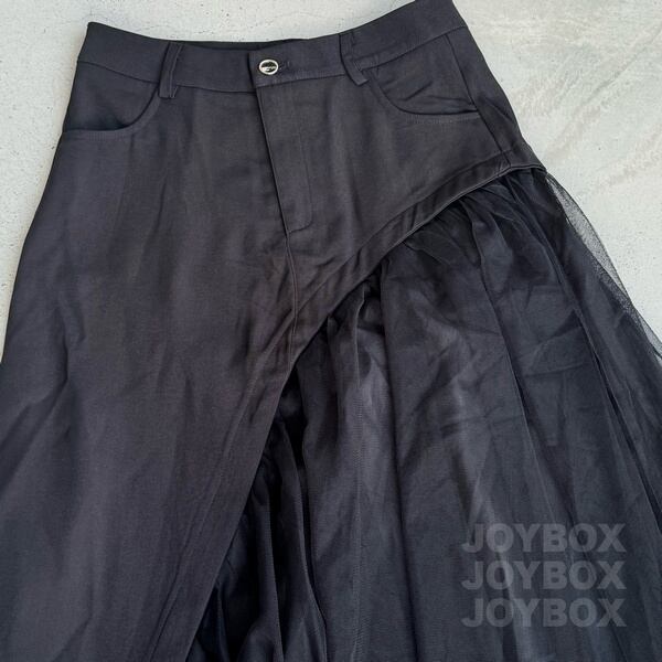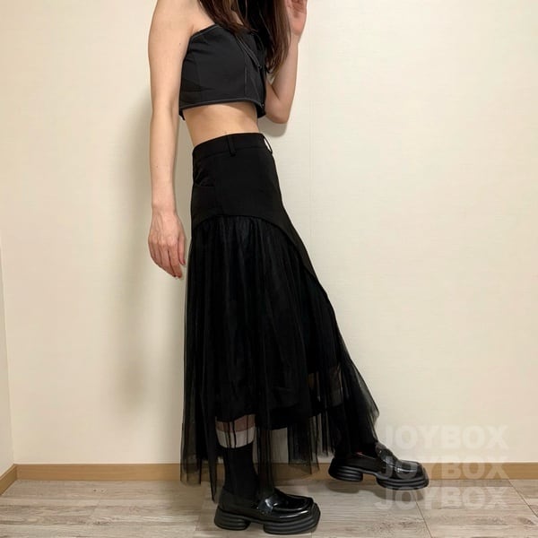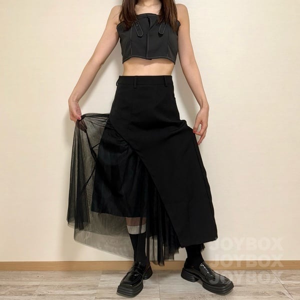 チュール ロング スカート 切替 アシメ 変形 韓国 ストリート系 モード系 サブカル 地雷 ファッション レディース 7SK-78