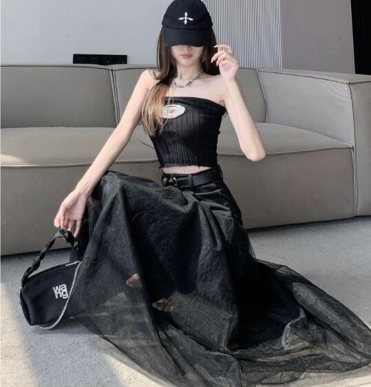 アシンメトリーなチュールが動く度変化を生み、黒も軽やかな印象で着こなせます♥