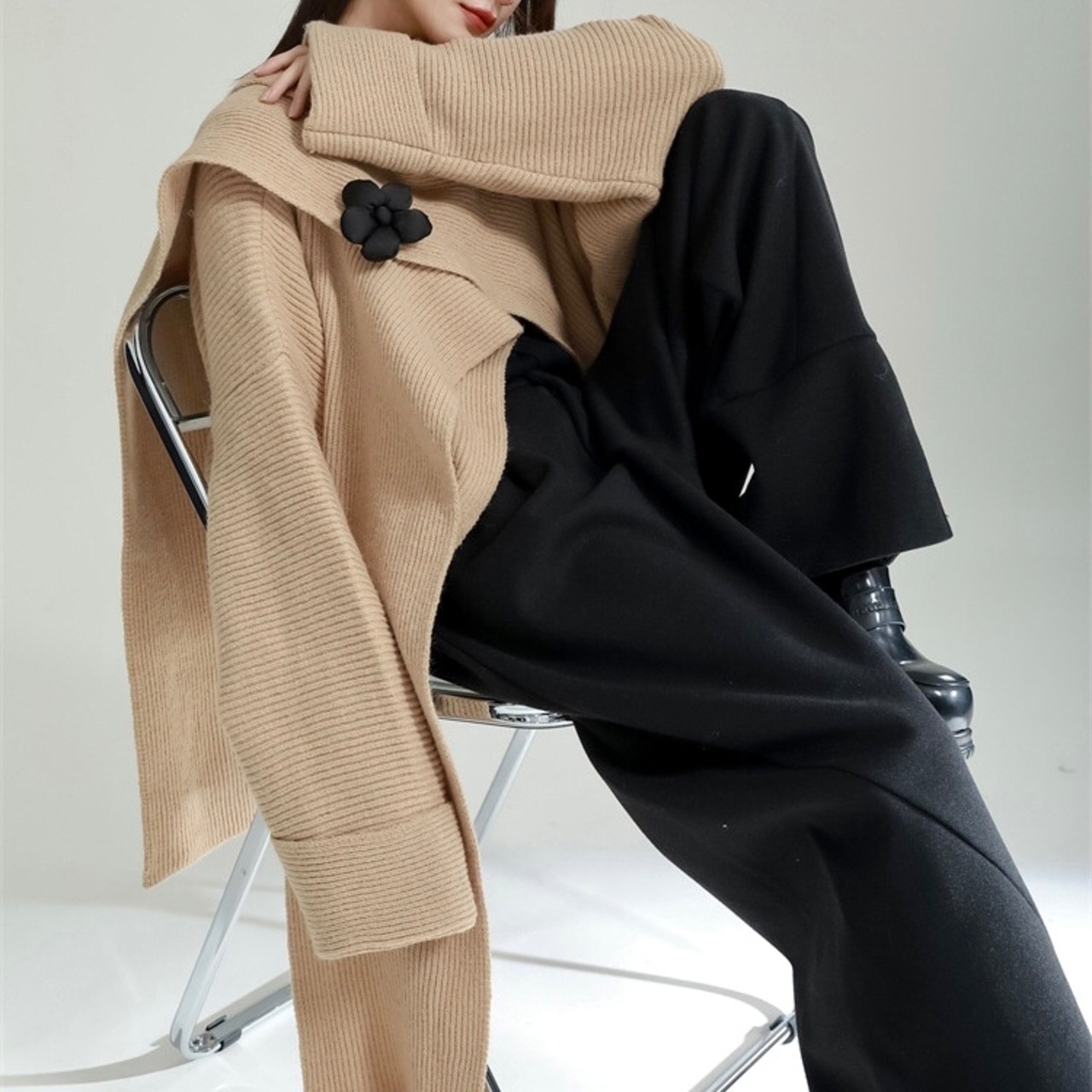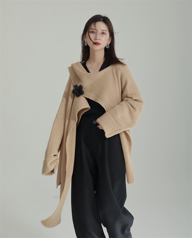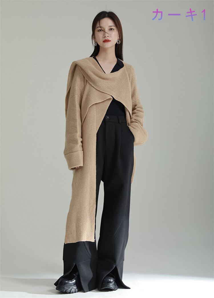 ニット ポンチョ チュニック セーター アシメ 変形 韓国 ストリート モード系 トップス 秋 冬 春 レディース 7NI-48