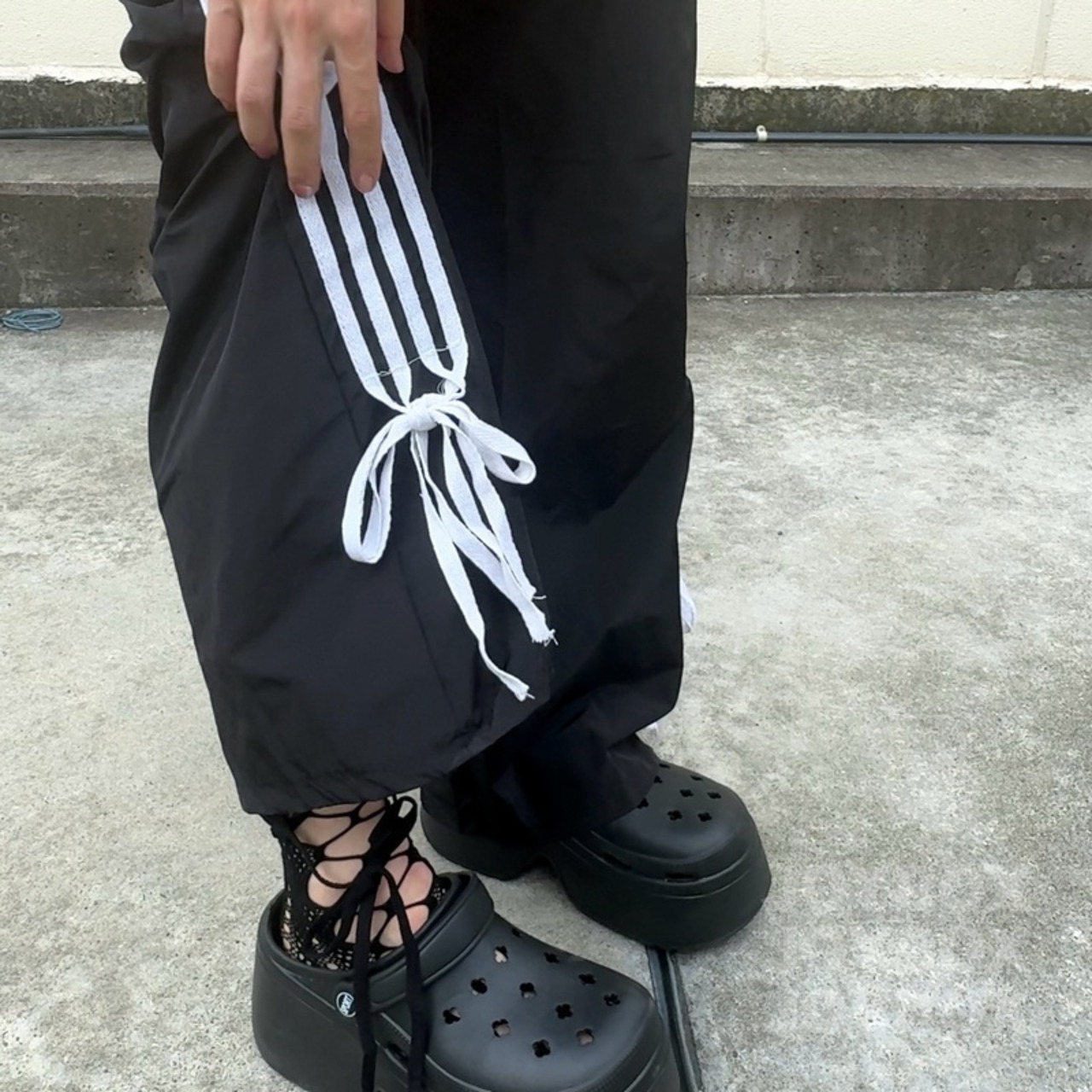 ライン リボン ナイロン パンツ 韓国 レディース ストリート系 Y2K バレエコア ダンス 衣装 K-POP ガーリー 多系統 スポーティー ファッション 7PA-117