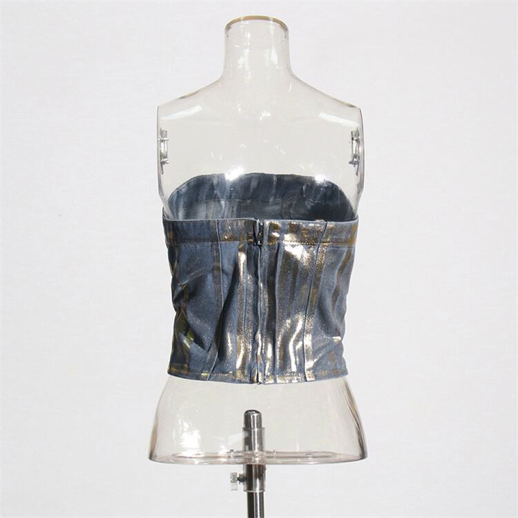 箔 オーロラ ビスチェ ベアトップ ホログラム メタリック 韓国 ストリート系 Y2K ダンス 衣装 K-POP ギャル 多系統 レディース ファッション 7T-495