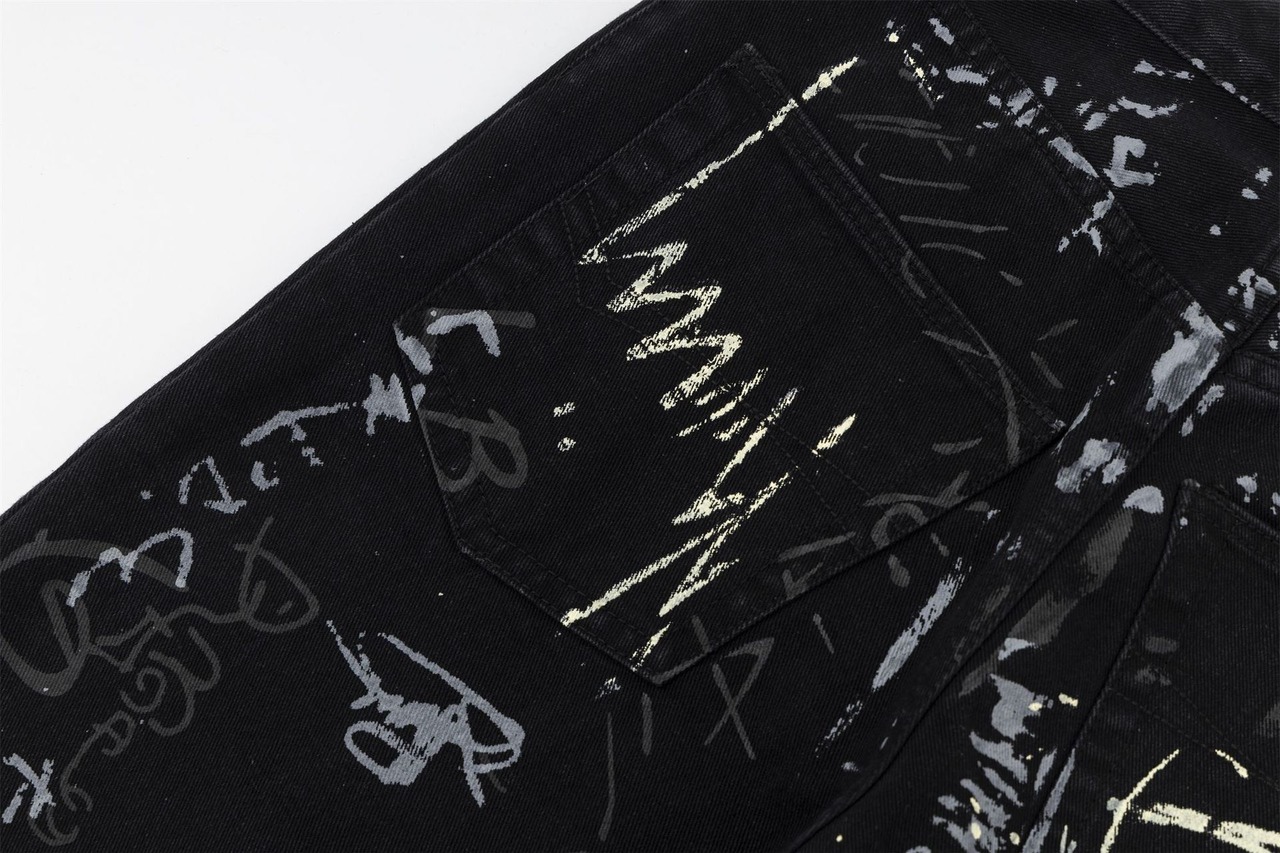 デニム パンツ ジーンズ ロゴ 落書き グラフィティ 韓国 ストリート系 Y2Kファッション ダンス 衣装 K-POP HIPHOP レディース 7J-231