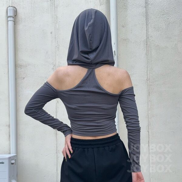 オフショル パーカー Tシャツ ショート丈 長袖 ロンT 韓国 ダンス 衣装 ストリート系 ギャル Y2Kファッション K-POP HIPHOP トップス レディース 8T-16
