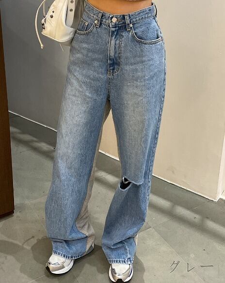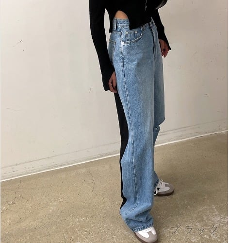 スウェット 切替 ドッキング デニム パンツ ジーンズ 韓国 ストリート系 Y2K ダンス 衣装 K-POP HIPHOP レディース ファッション 8J-7