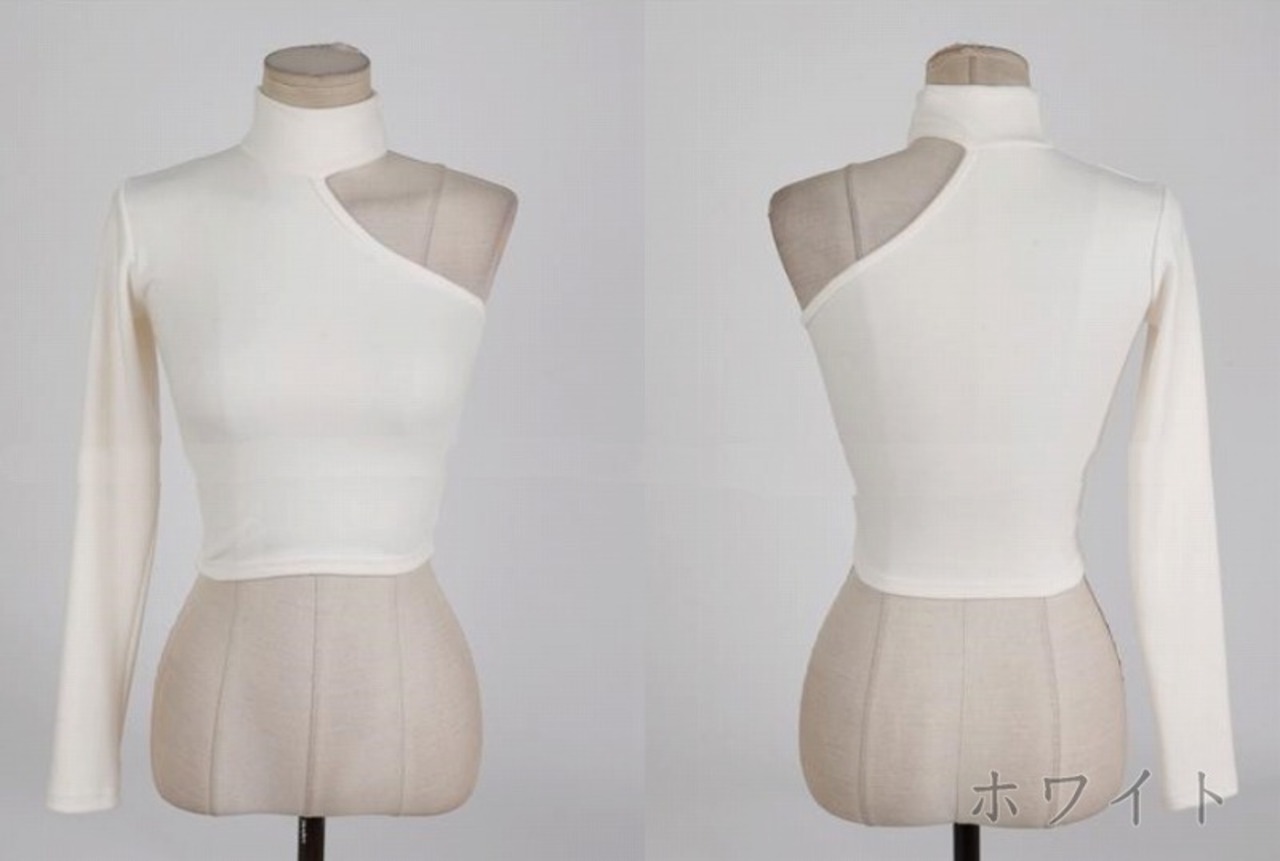 オフショル 長袖 トップス ロンT Tシャツ ショート丈 ハイネック モックネック アシメ 変形 韓国 ストリート系 ダンス 衣装 K-POP 大人 ギャル レディース 8T-32