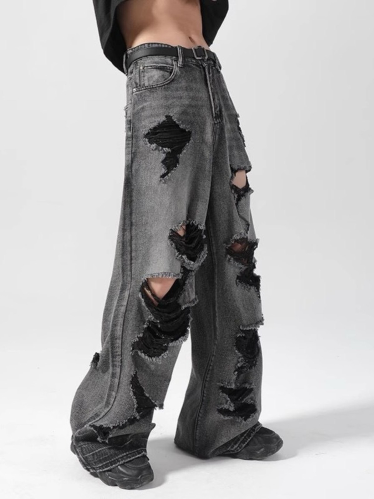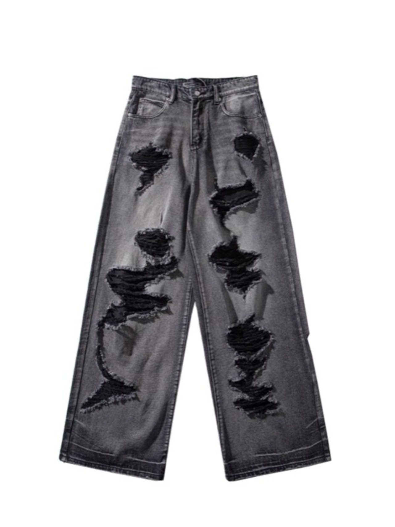 クラッシュ デニム パンツ ジーンズ ダメージ 韓国 ストリート系 ダンス 衣装 グランジ Y2Kファッション HIPHOP K-POP レディース 8J-12