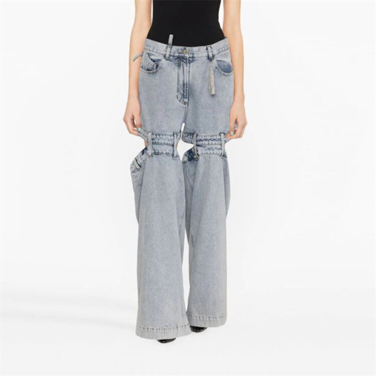 デニム カーゴ パンツ スリット 絶対領域 ジーンズ レッグカバー 韓国 ストリート モード系 ダンス 衣装 K-POP HIPHOP ギャル レディース 8J-16